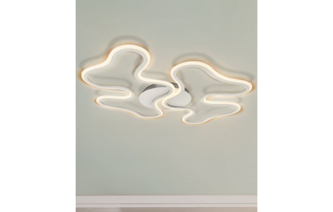 Candeeiro de teto ou de parede de luz LED, Feito em metal e alumínio, acabamento branco areado. Difusor de silicone opaco.