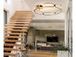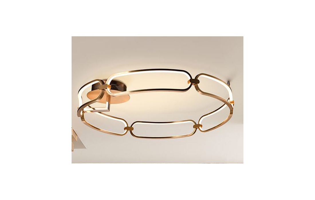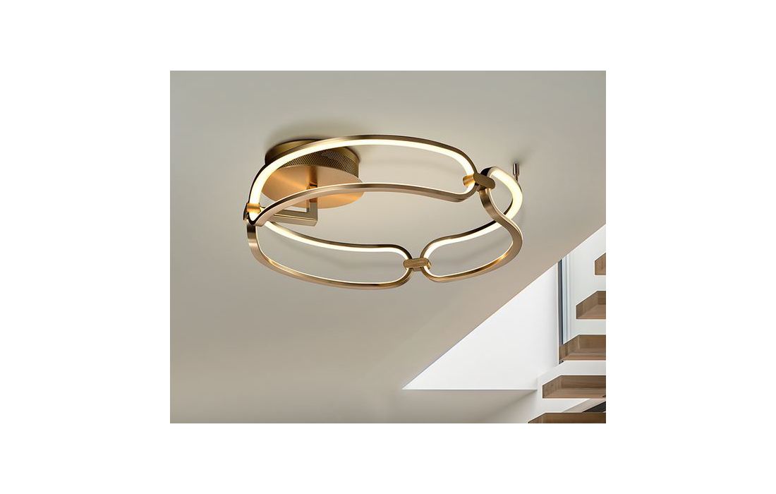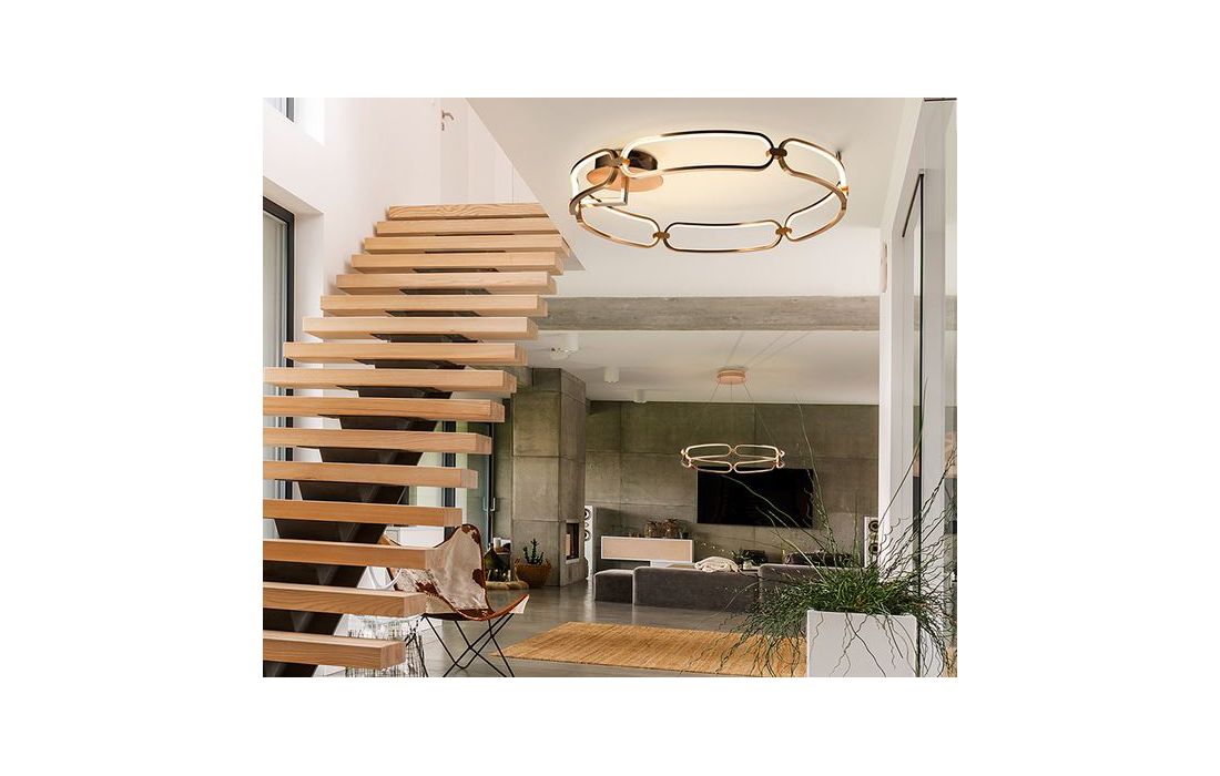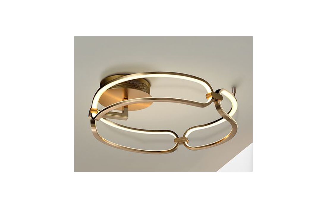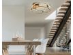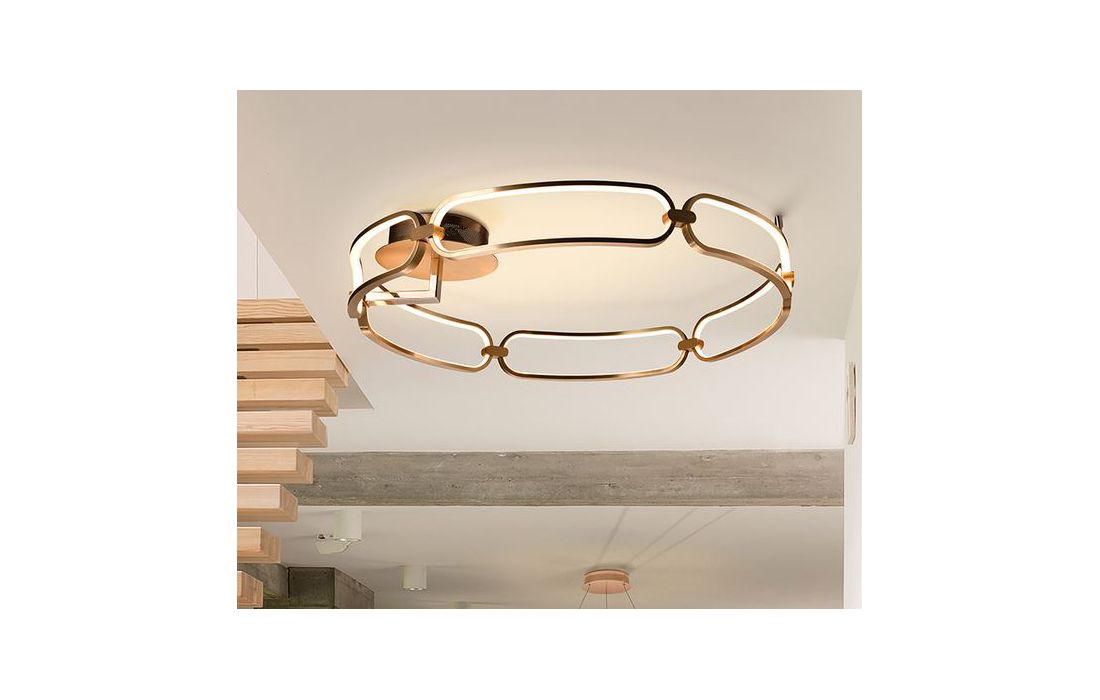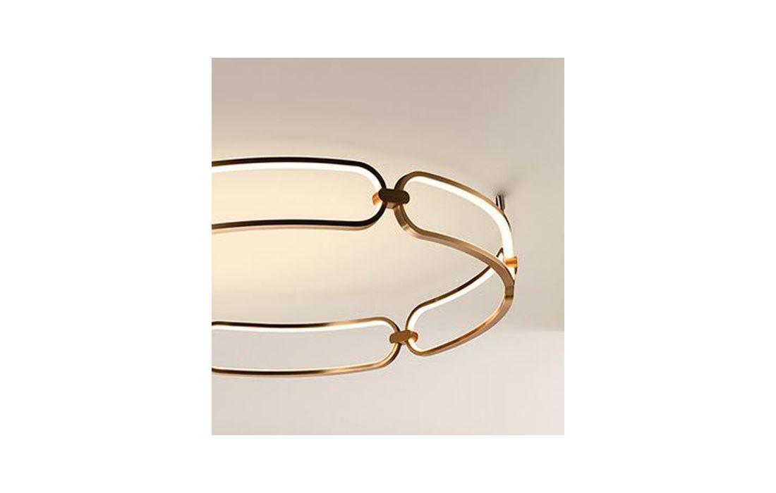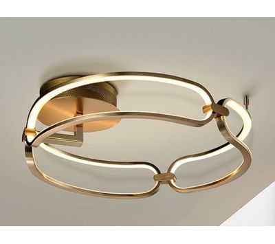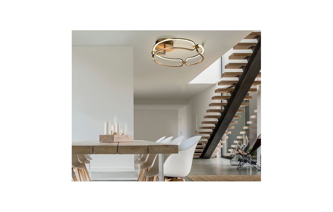 Candeeiro de teto LED, realizado em alumínio escovado com acabamento dourado. Difusores de silicone opalino. Disponivel em tamanho grande e pequeno.