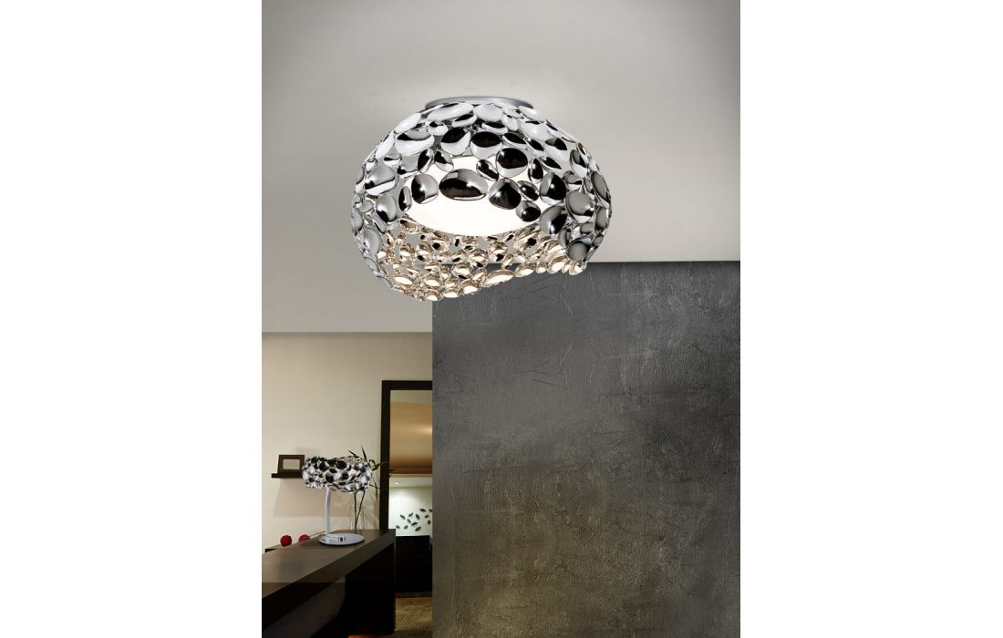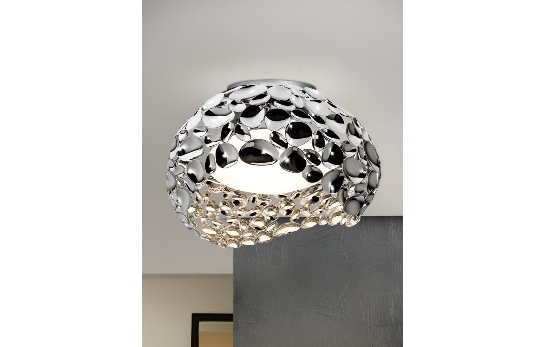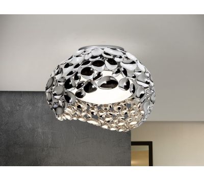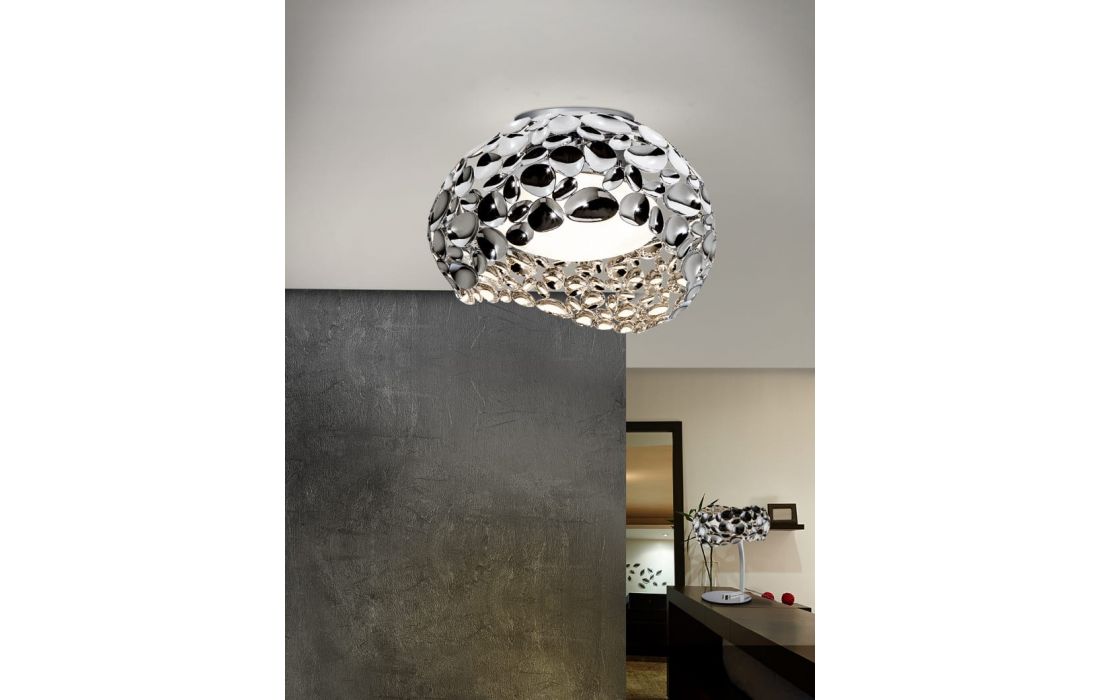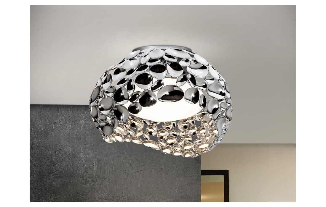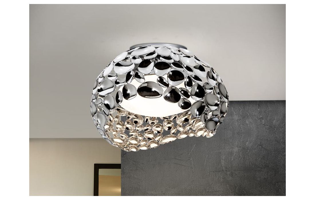 Candeeiro de teto de 5 luzes LED em metal cromado. Difusor acrílico interior.
