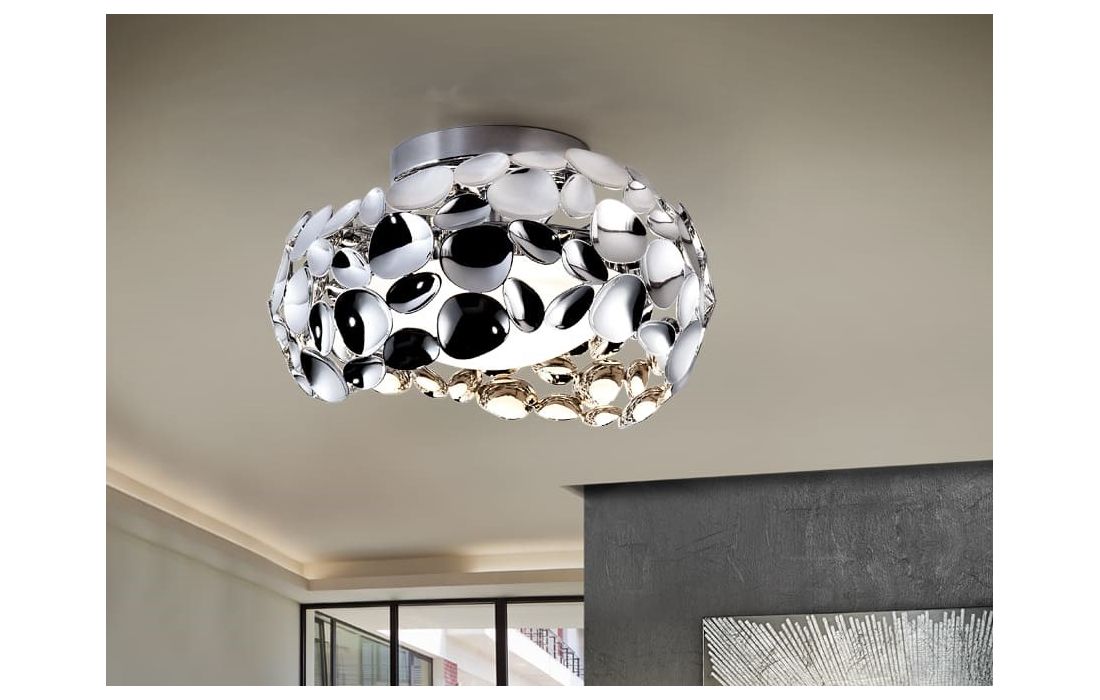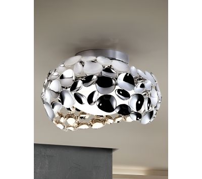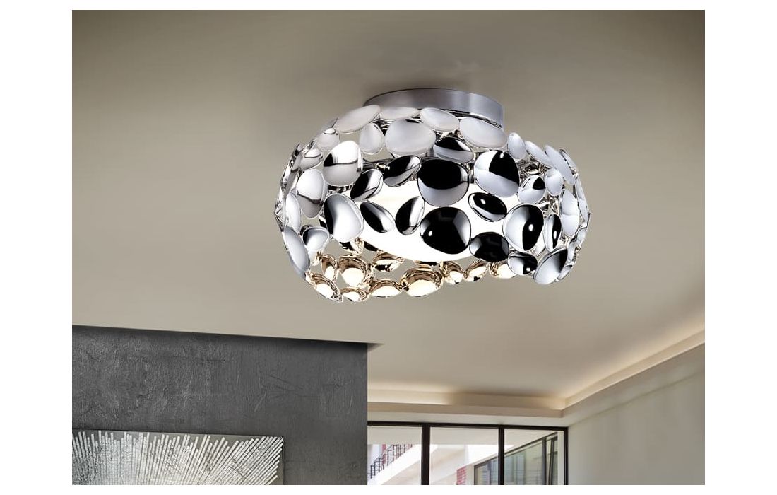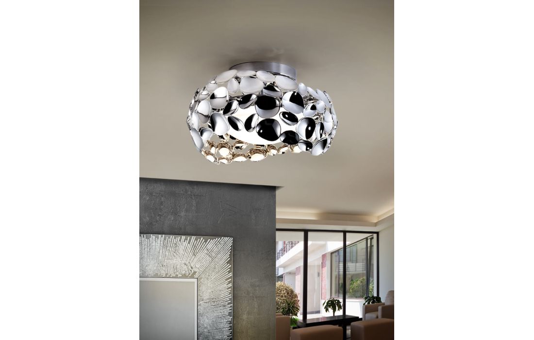 Candeeiro de teto de 3 luzes LED em metal cromado. Difusor acrílico interior.