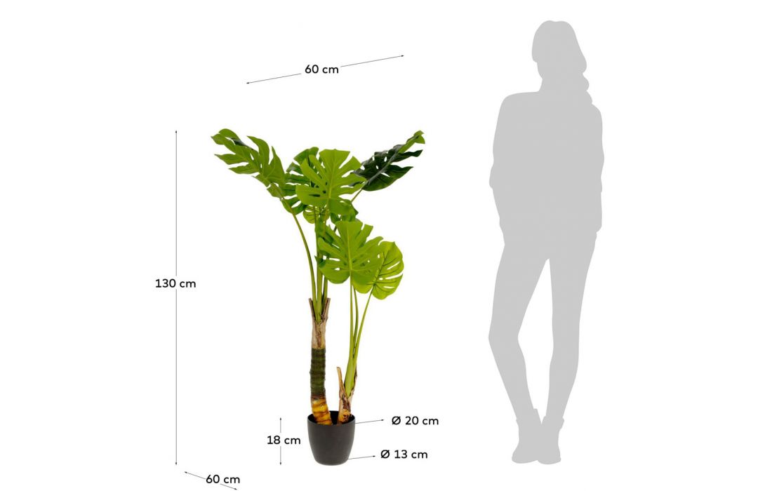 Planta decorativa Monstera, 120 cm de altura, com vaso incluído