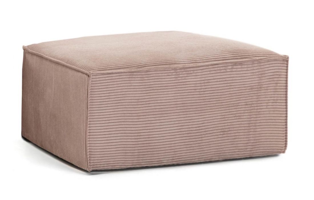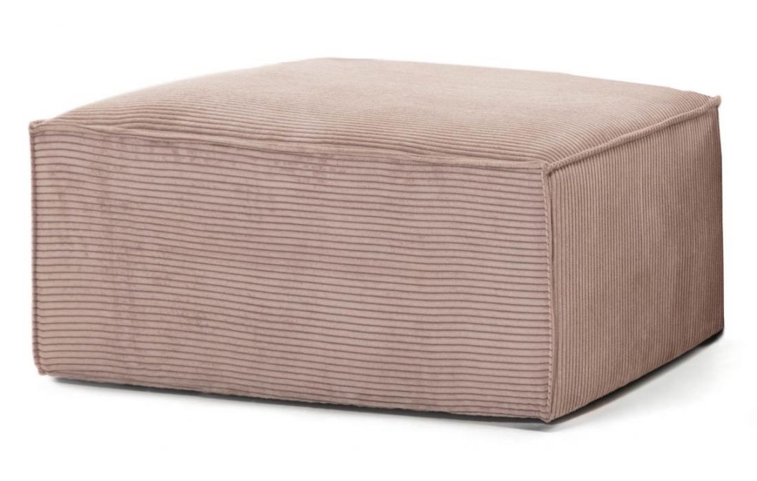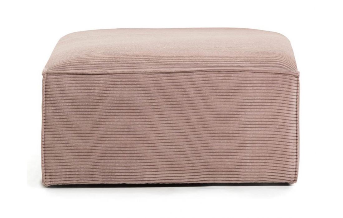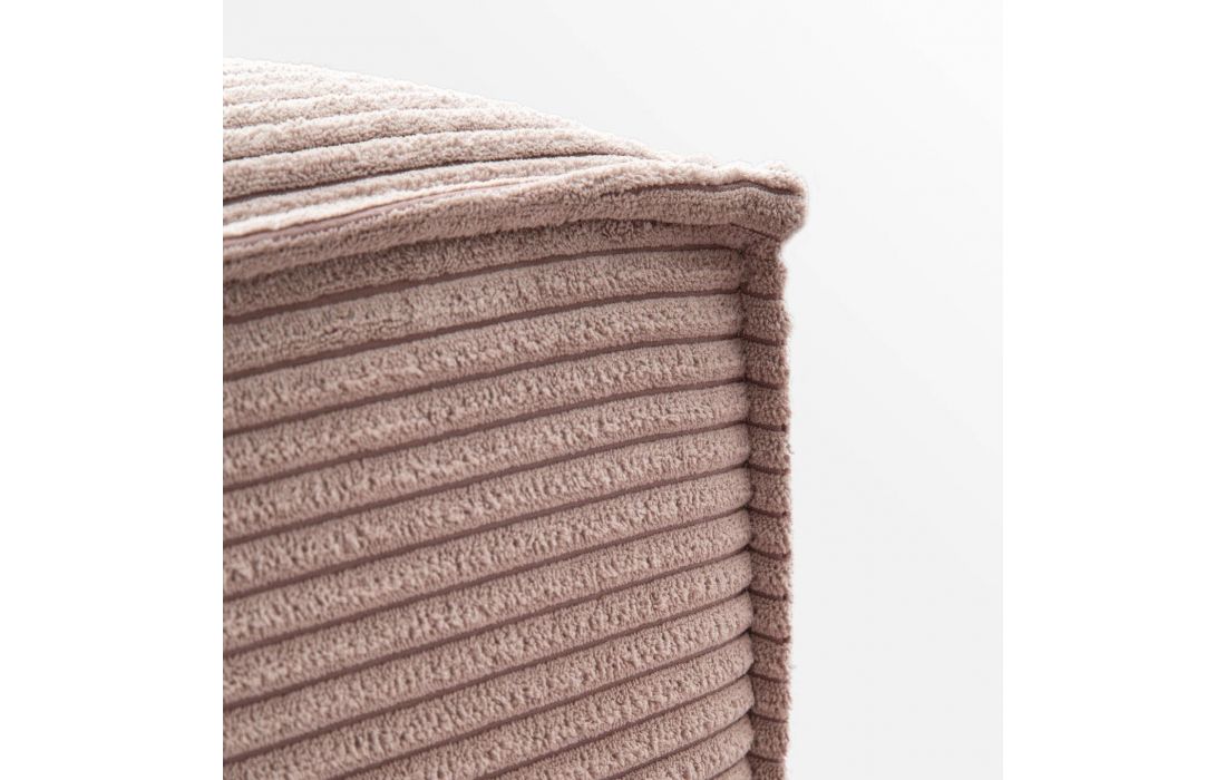 Puff estofado em veludo rosa, possui almofada com duas camadas de espuma, uma mais dura para dar estabilidade e uma mais fina e macia para ser confortável.