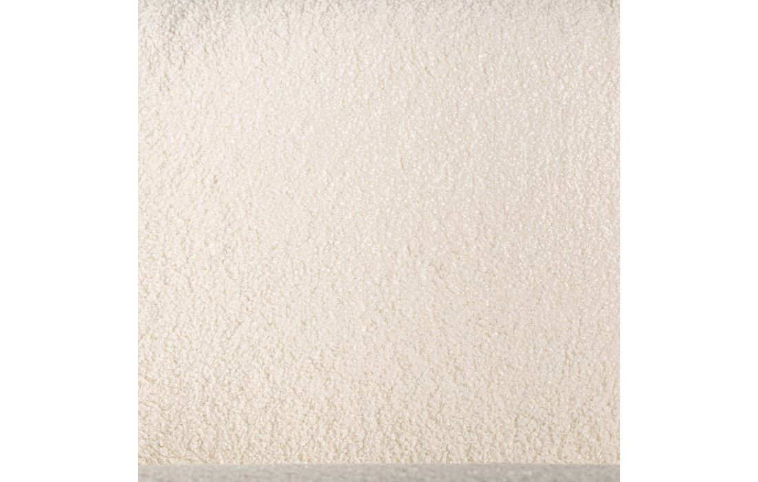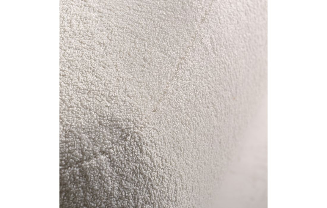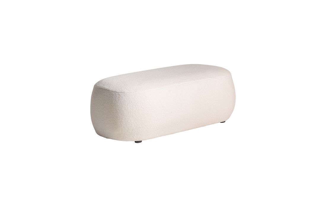 Banqueta feito de madeira de abeto e estofos de algodão bouclé com acabamento arredondado.