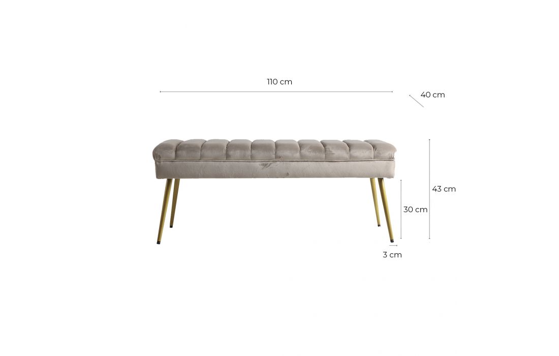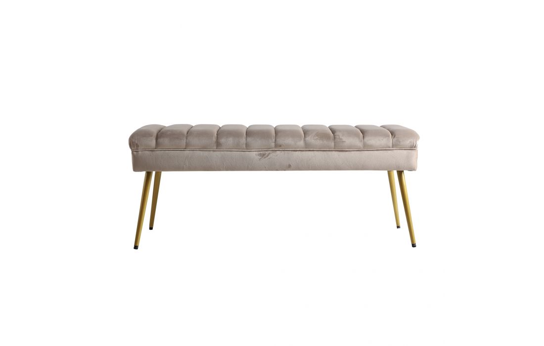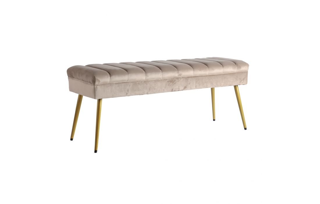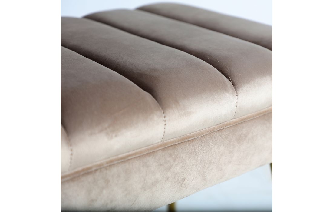 Banqueta feito de pernas de aço douradas e estofado em veludo na cor taupe