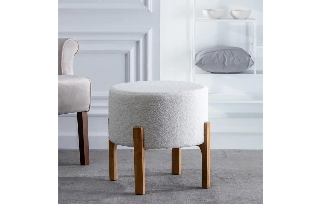 Banco em madeira de abeto, MDF e tecido na cor bege
