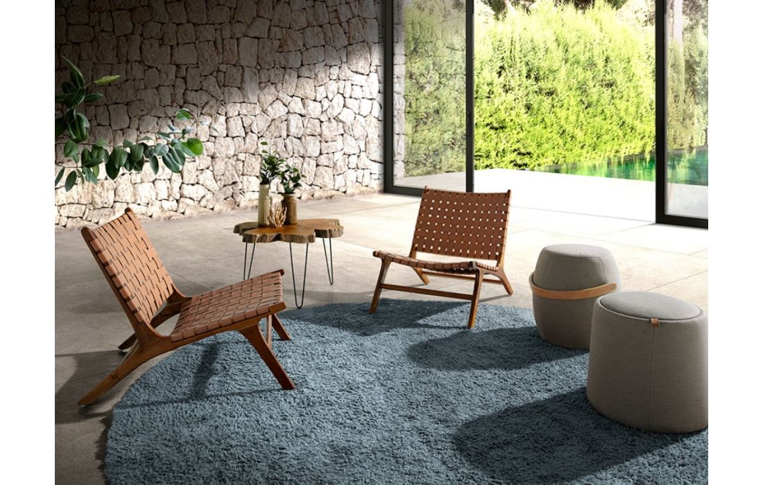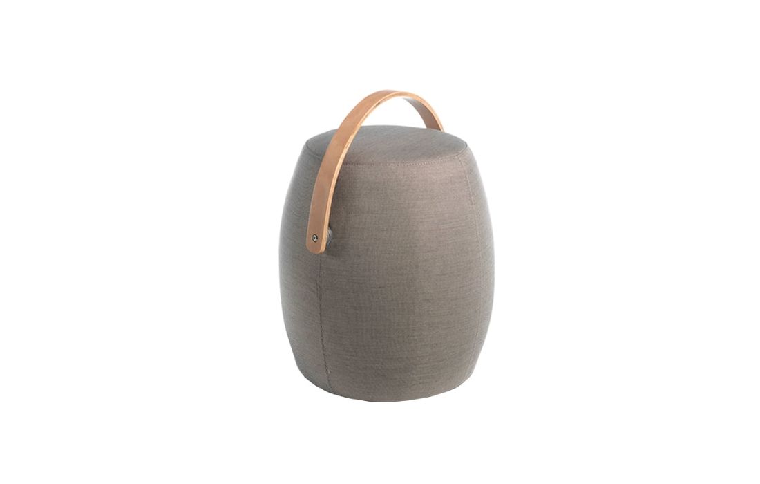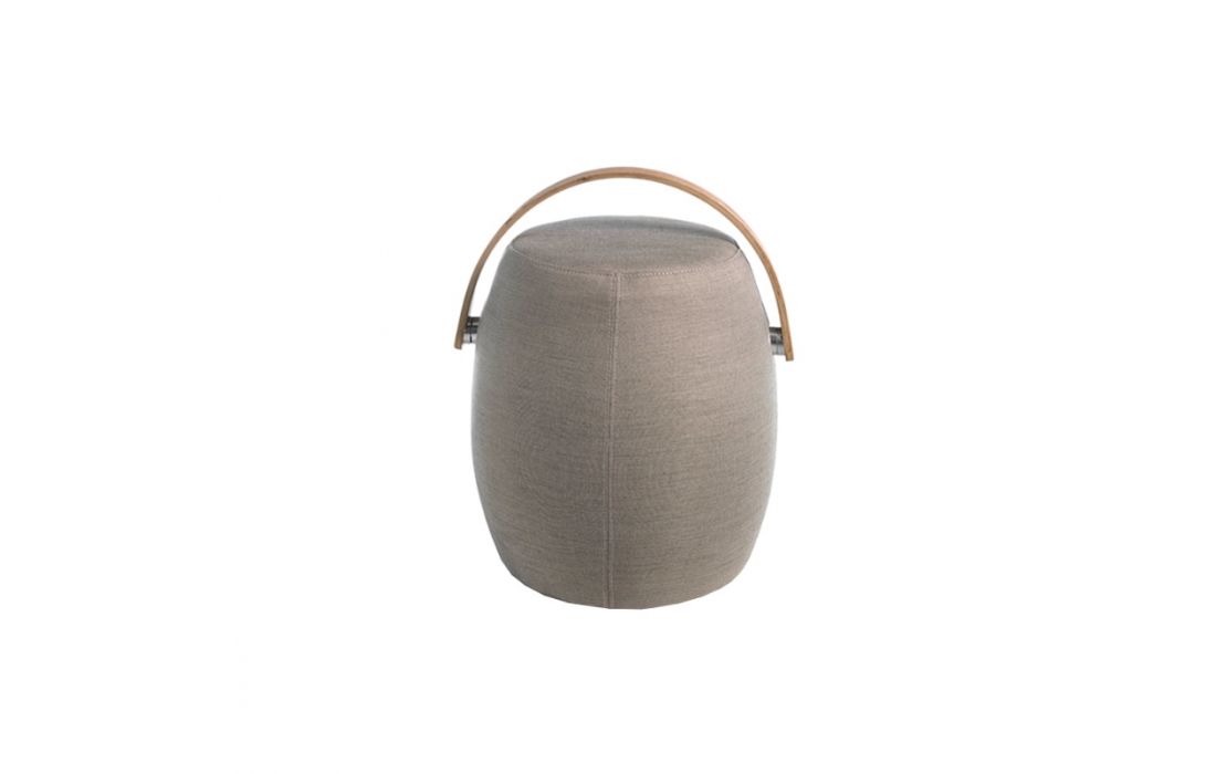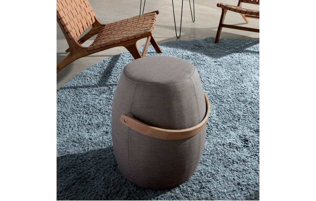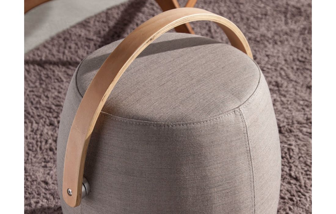 Puff estofado em tecido cinza com cabo articulado em compensado de cor carvalho.Destinatário :