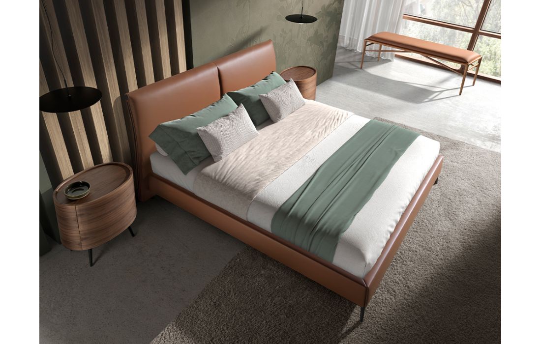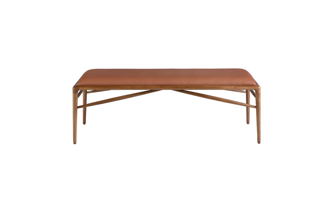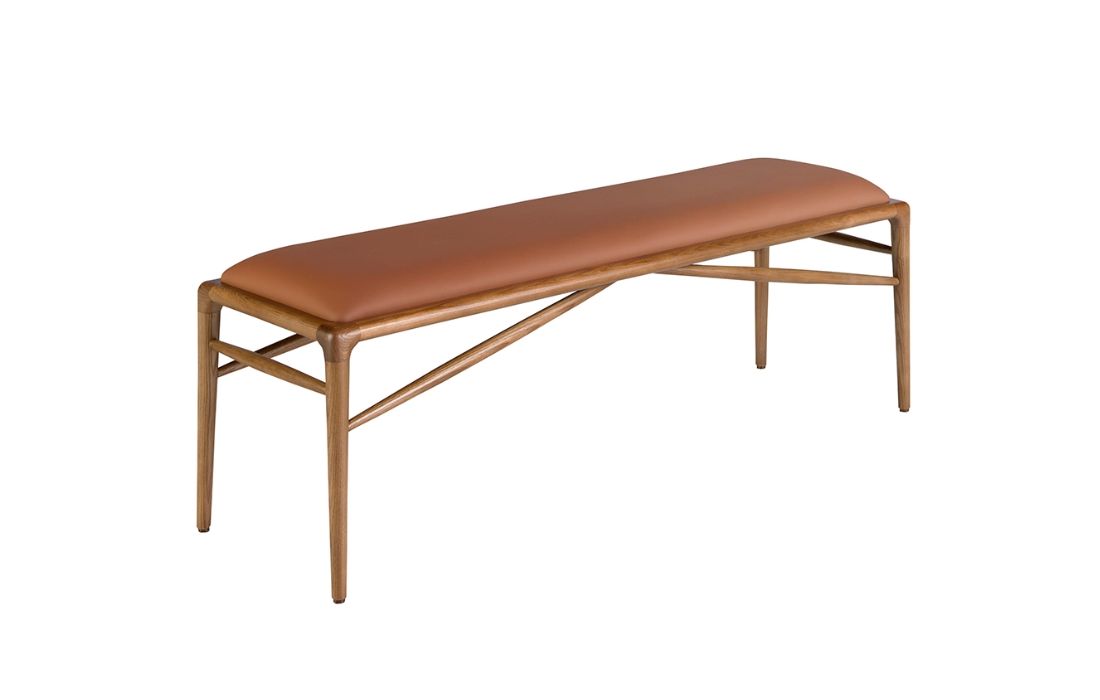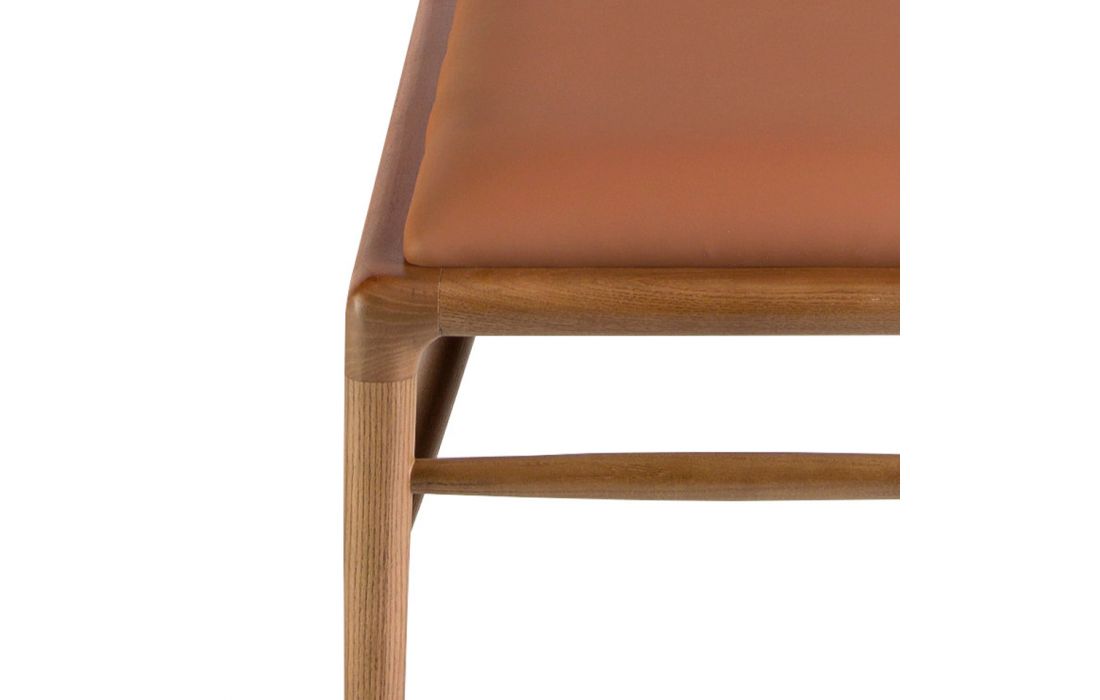 Banqueta com assento estofado em imitação de couro marrom. Os seus pés de madeira cor de nogueira.Destinatário :