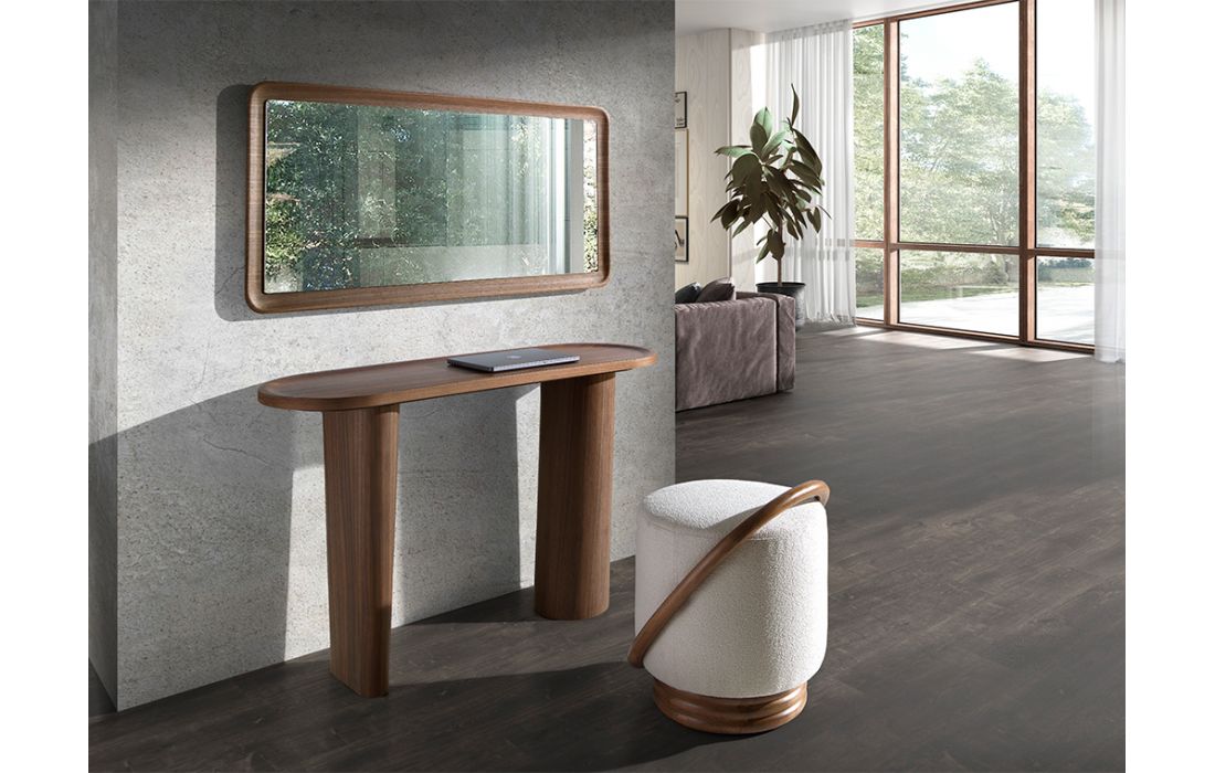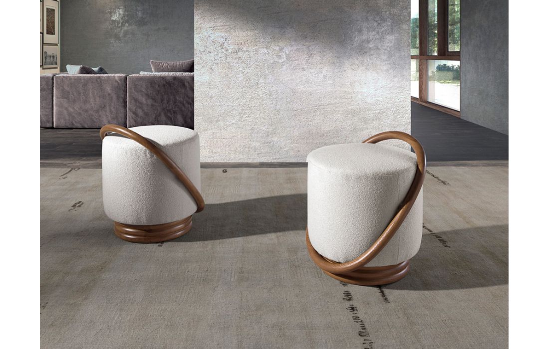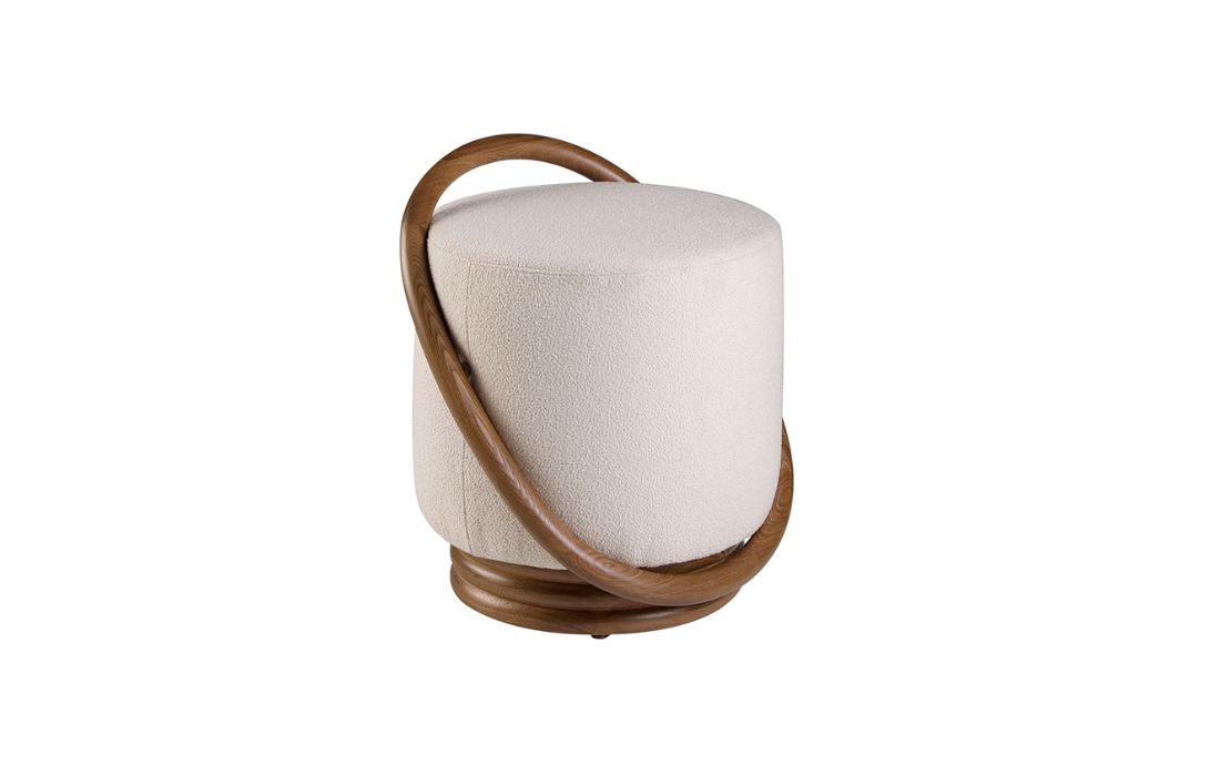 Puff com assento estofado em tecido branco. Base de madeira na cor nogueira.Destinatário :