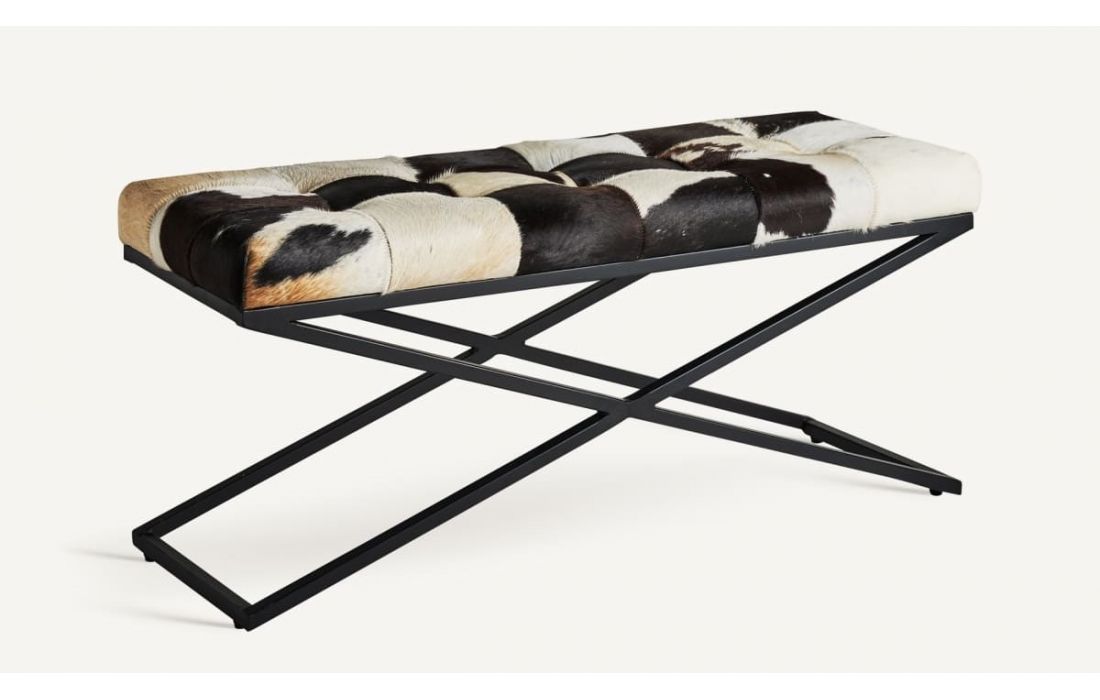 Banqueta com estrutura em ferro e estofo em couro.Dimensões em cm