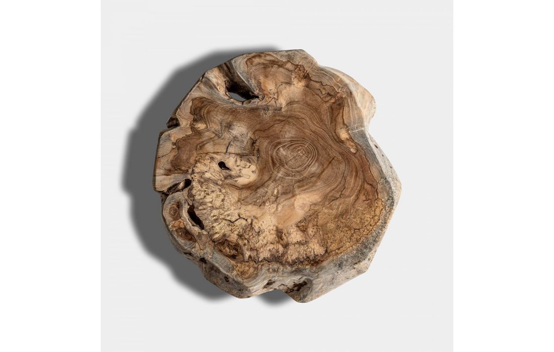 Banqueta estilo étnico feita em madeira de teca na cor castanhaDimensões em cm