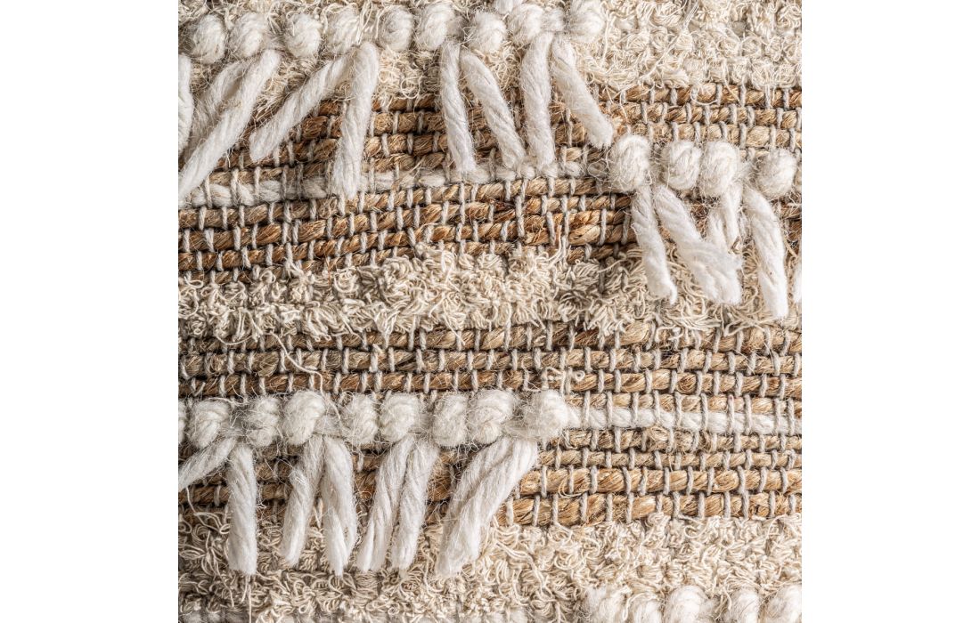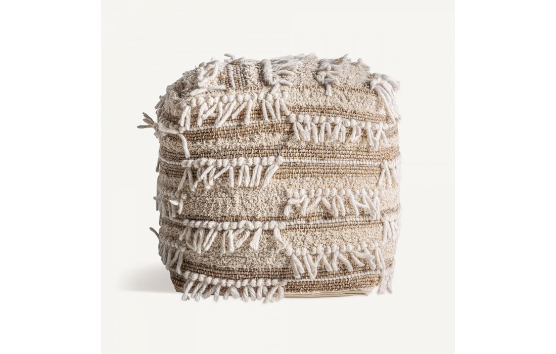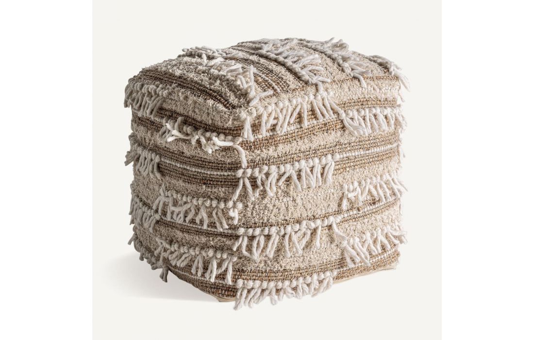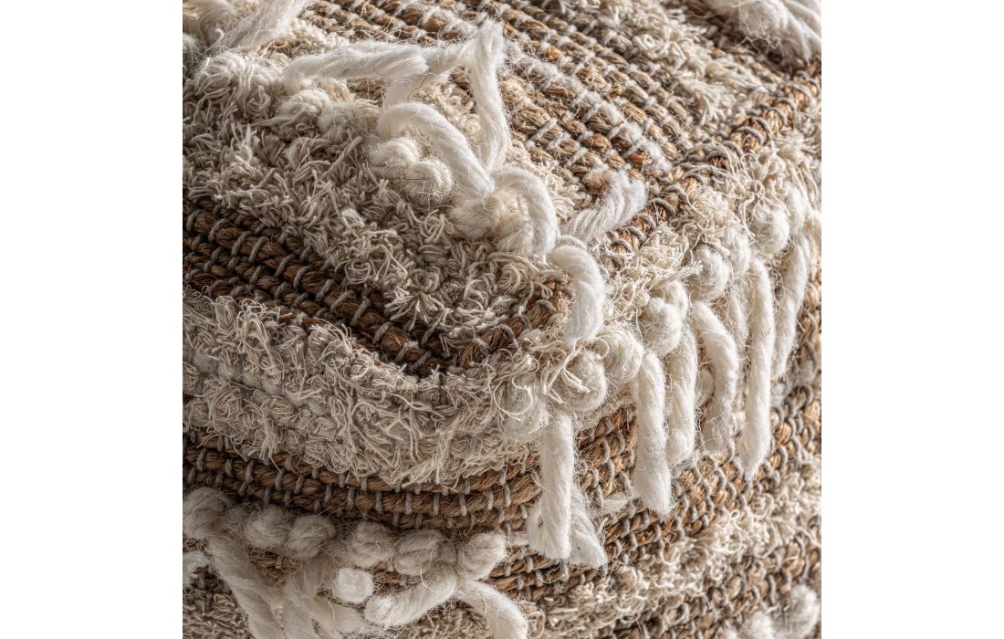Puff estilo boho feito de juta, algodão e lã na cor castanha