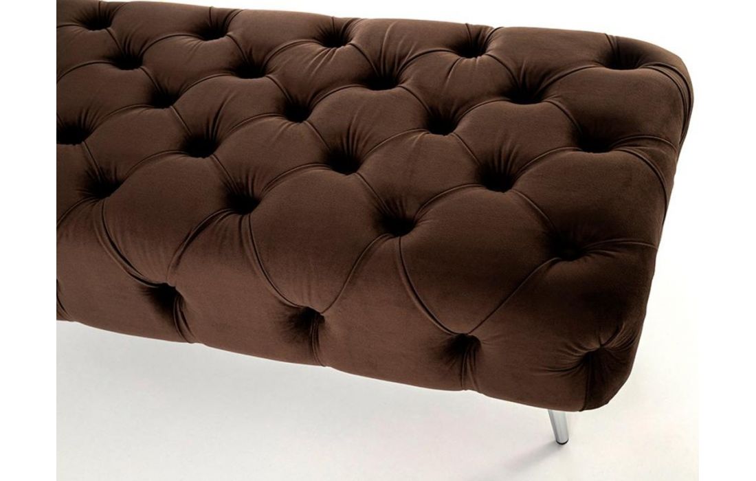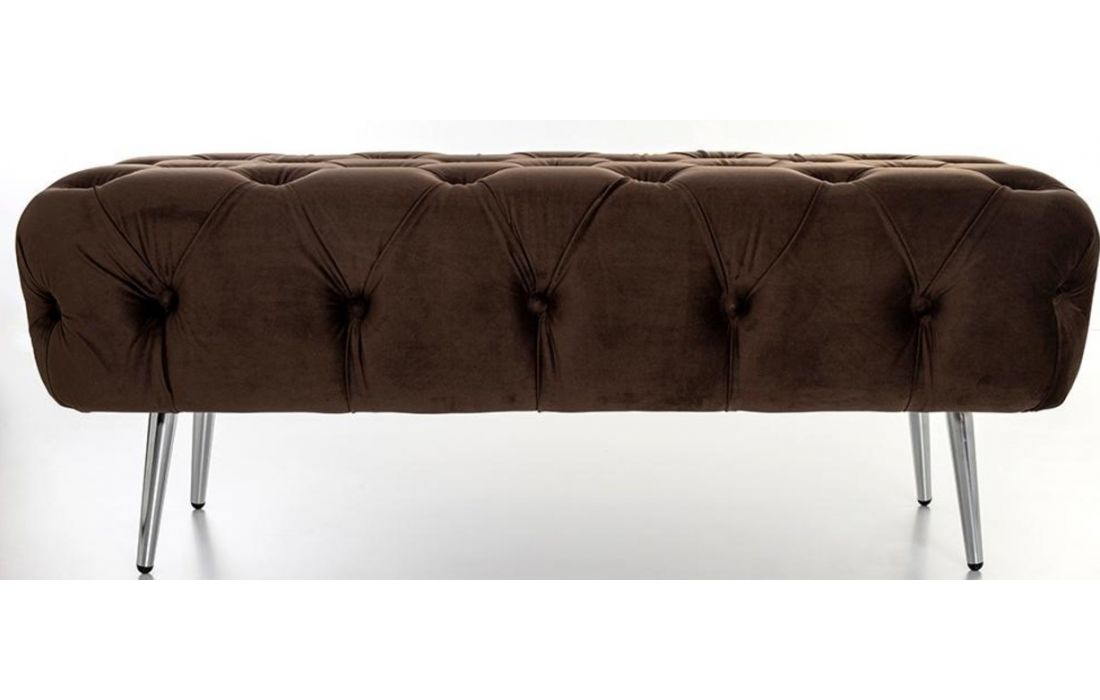 Banqueta em veludo com pés em metal cromado.