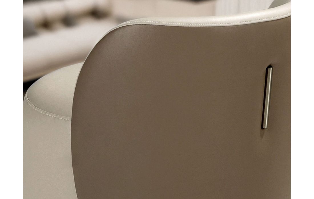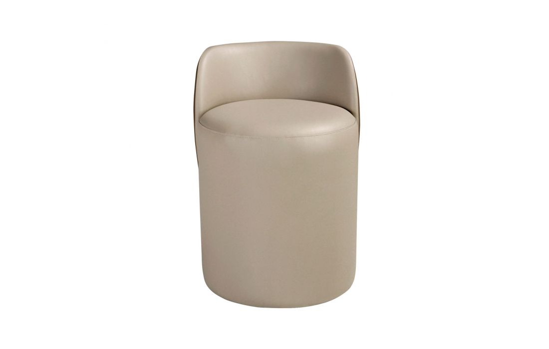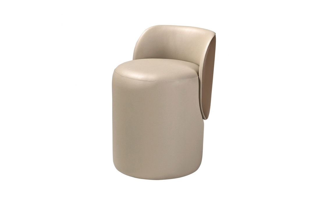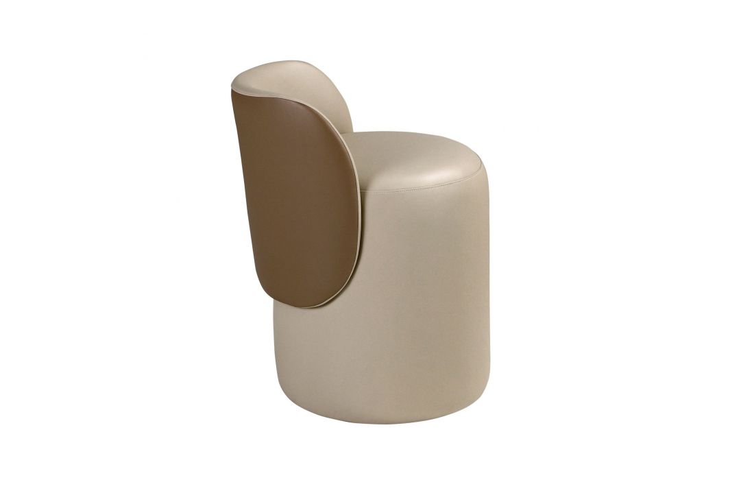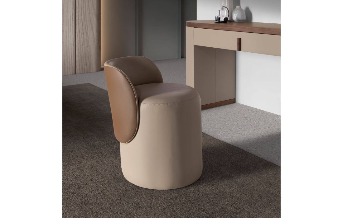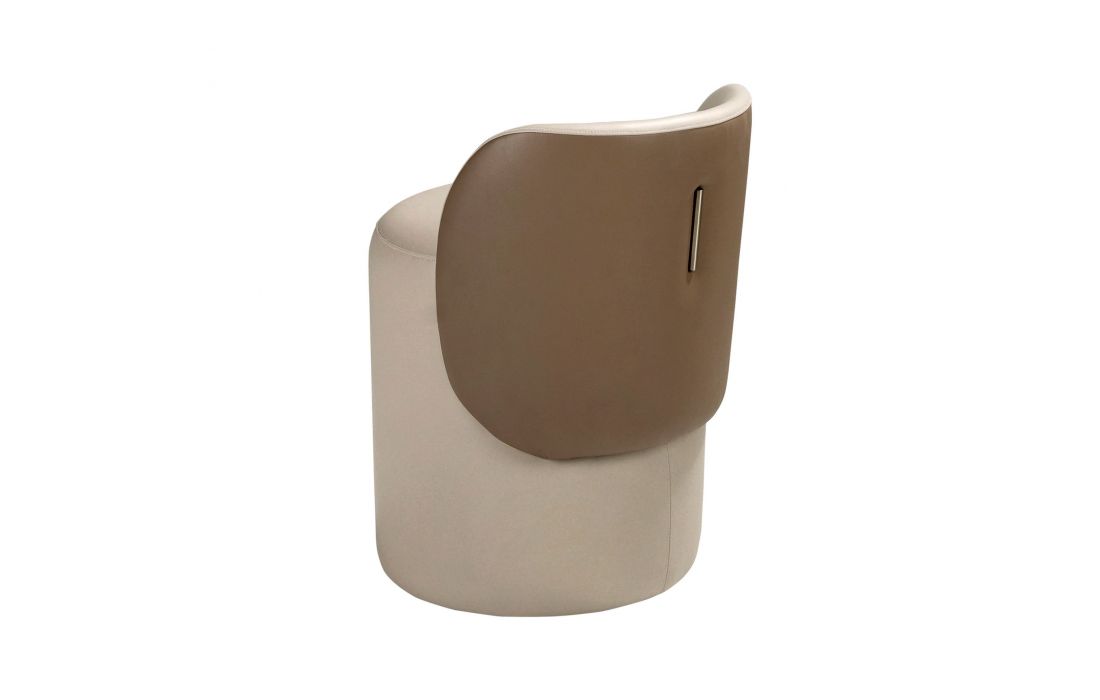 Um Puff de design moderno, estofado em pele sintética com assento cor vison e encosto castanho. Possui um detalhe marcante em aço inoxidável polido com acabamento dourado. Uma peça decorativa prática e funcional.Destinatário :