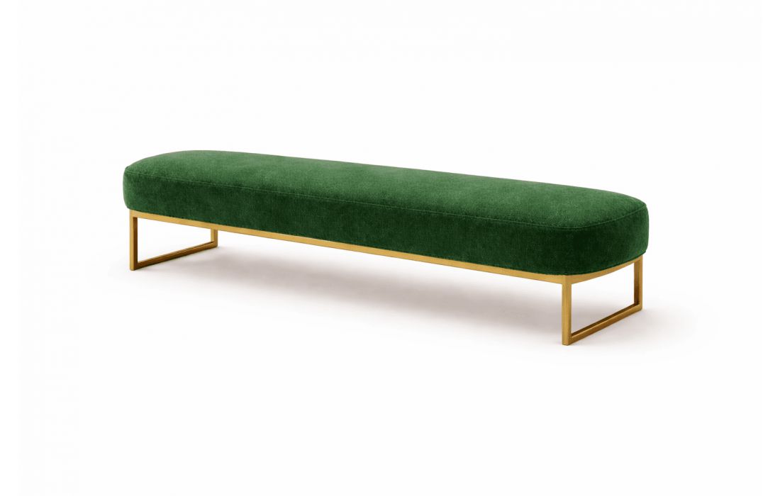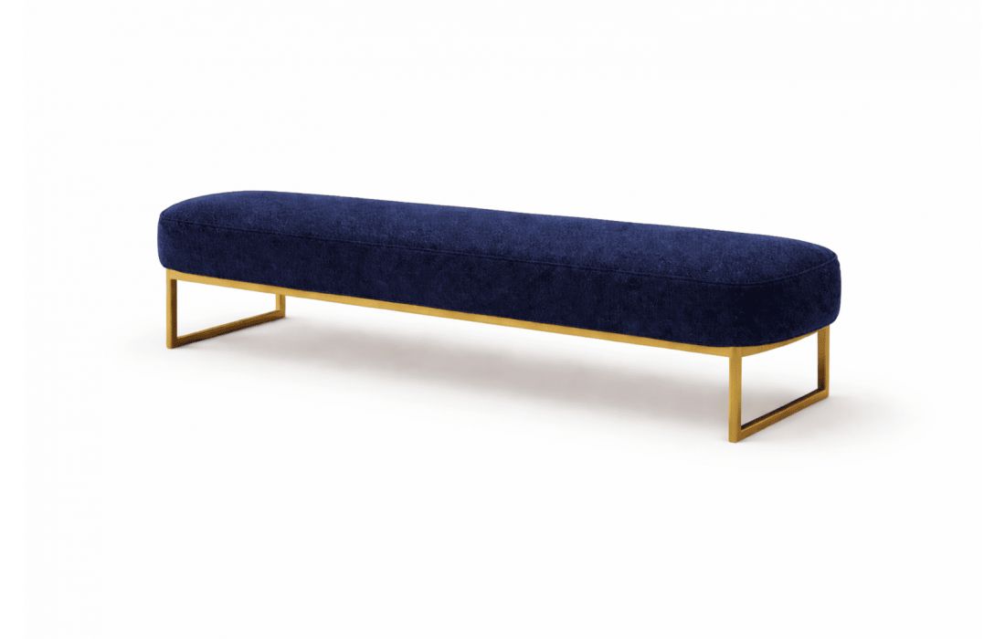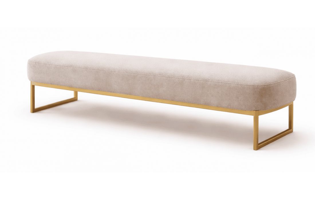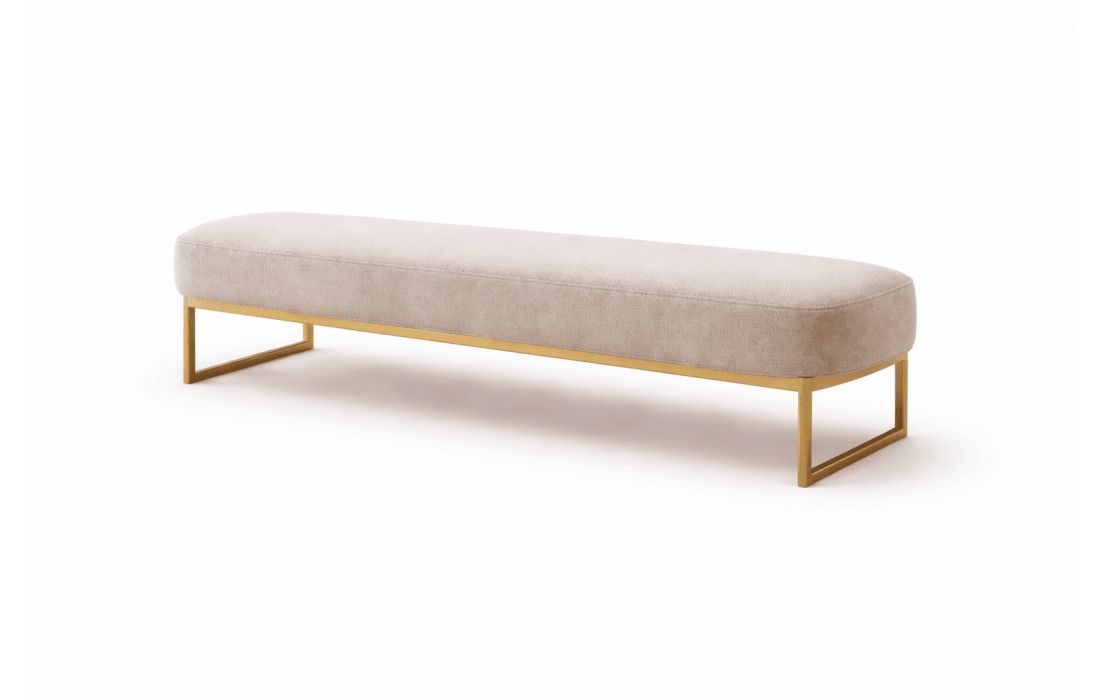 Banqueta em tecido com base em inox dourado.