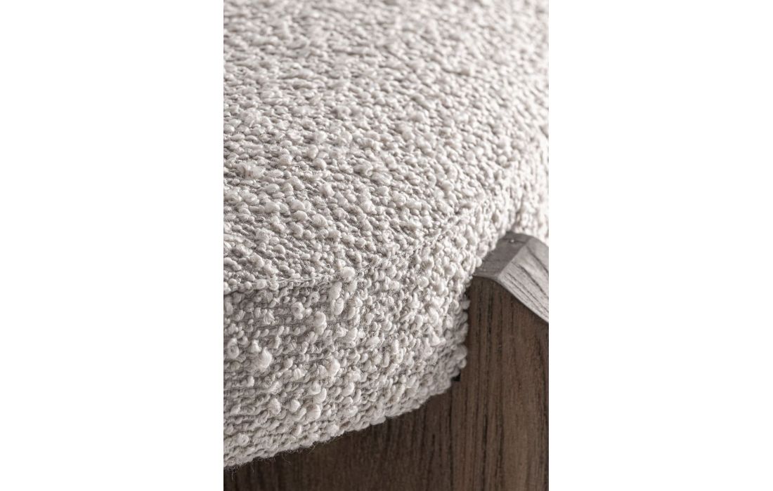 O assento estofado em tecido, de textura macia e acabamento neutro, proporciona conforto e um toque acolhedor.