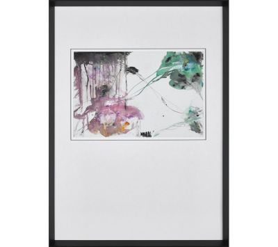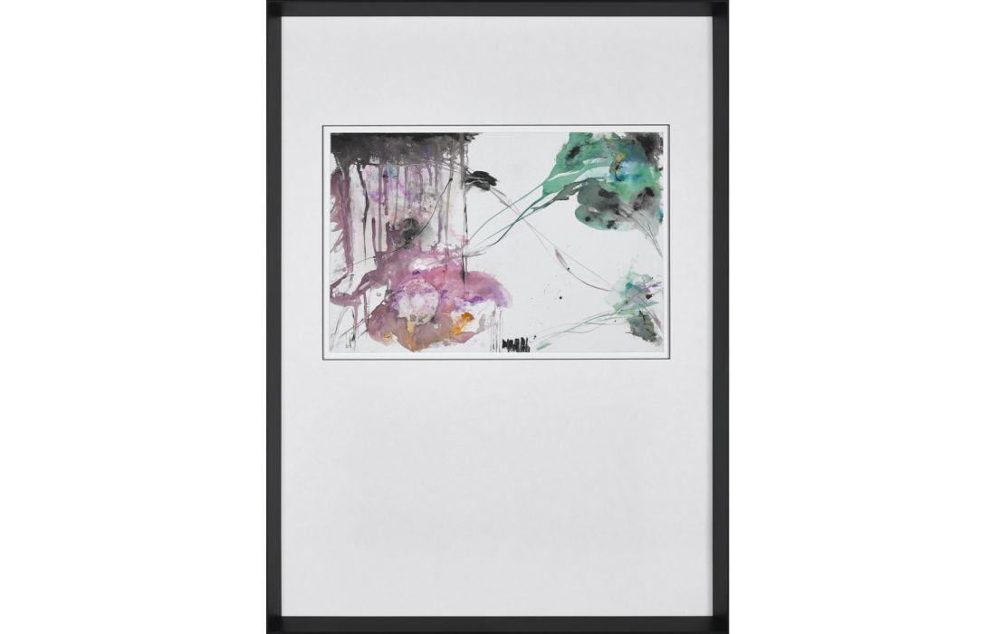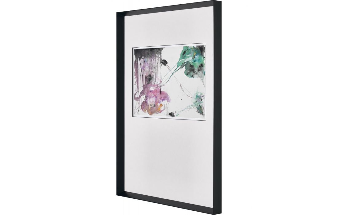 Quadro original do autor Vicente Marzal, pintura abstrata pintada em tela com vidro e moldura de de cor preta.