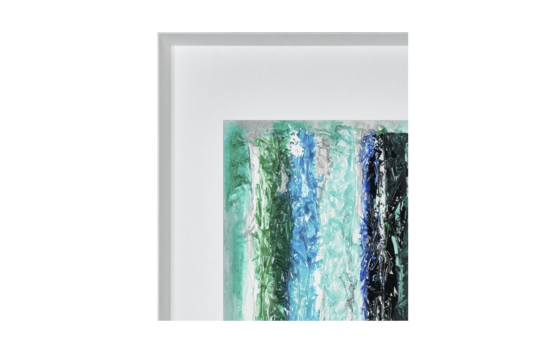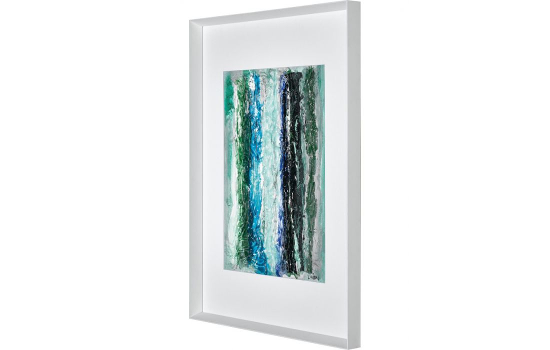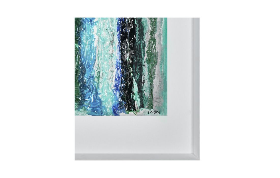 Quadro original do autor David Siver, pintura abstrata com moldura de cor branca.