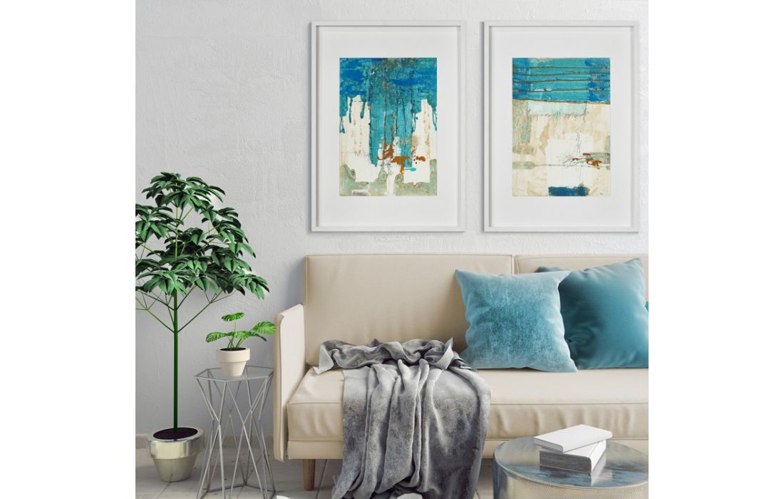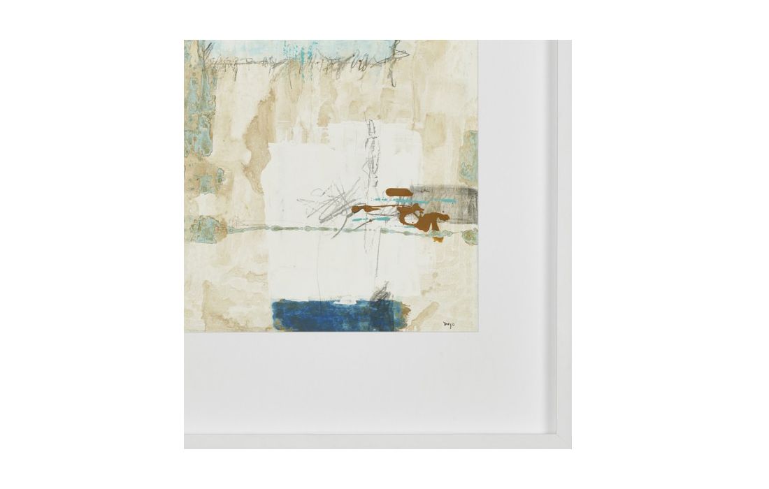 Quadro original do autor Diego Serra, pintura abstrata com vidro e moldura em lacado branco.