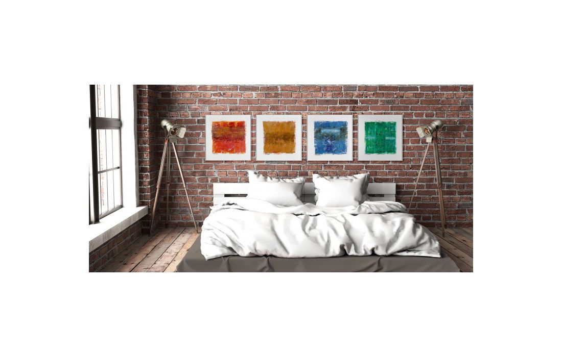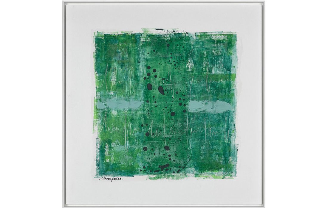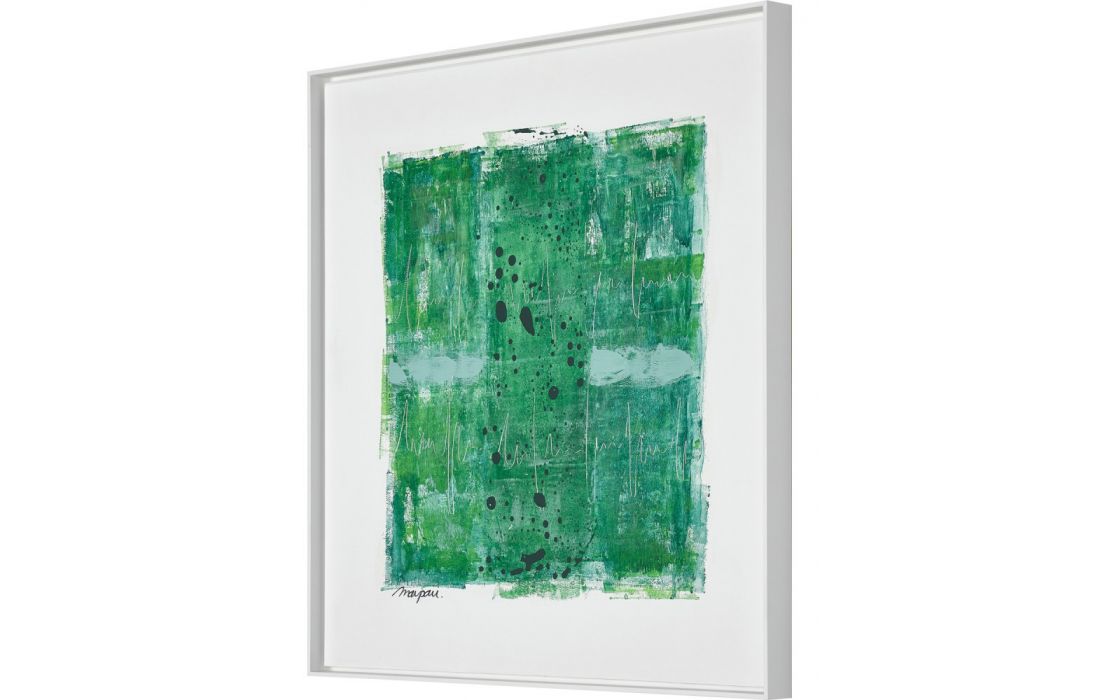 Quadro original do autor Felipe Marpau, pintura abstrata com moldura pintada de branco.