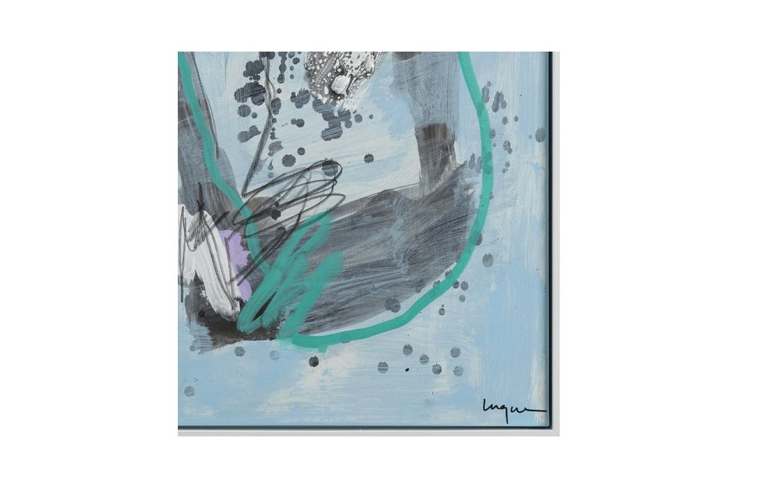 Quadro original do autor César Luque, pintura abstrata em tela com moldura pintada de branco.