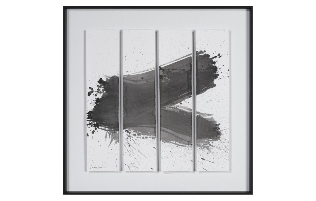 Quadro original do autor César Luque, pintura abstrata com moldura em aluminio pintada de preto mate.