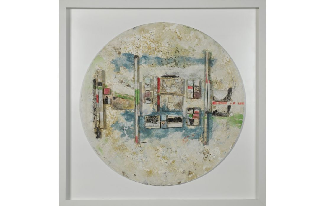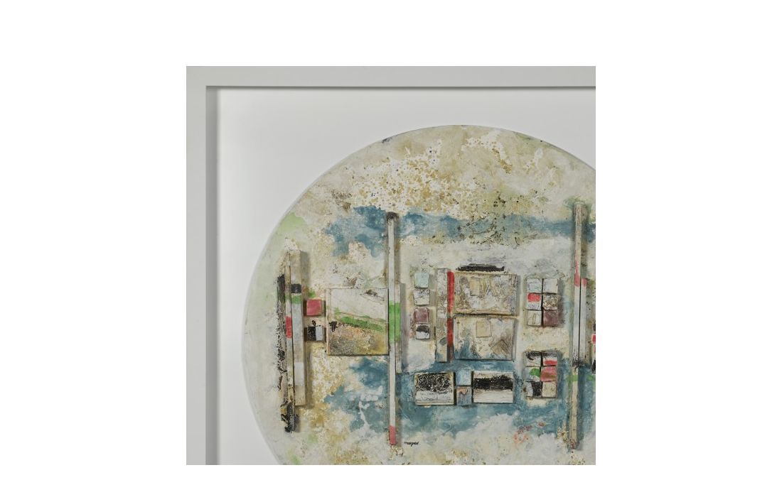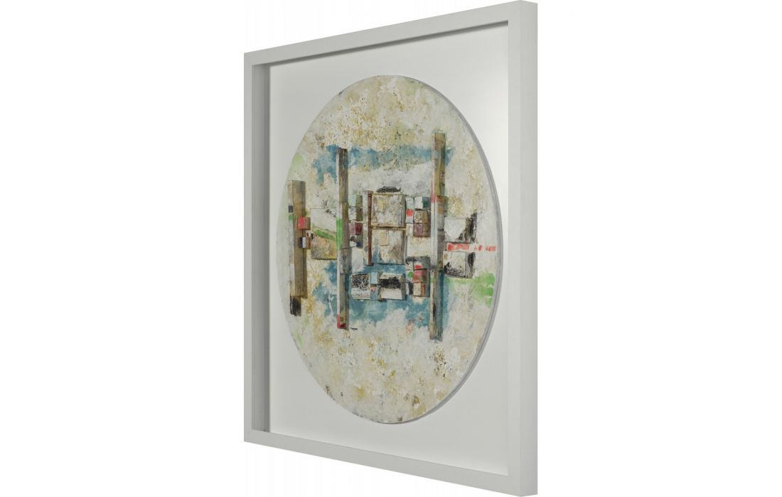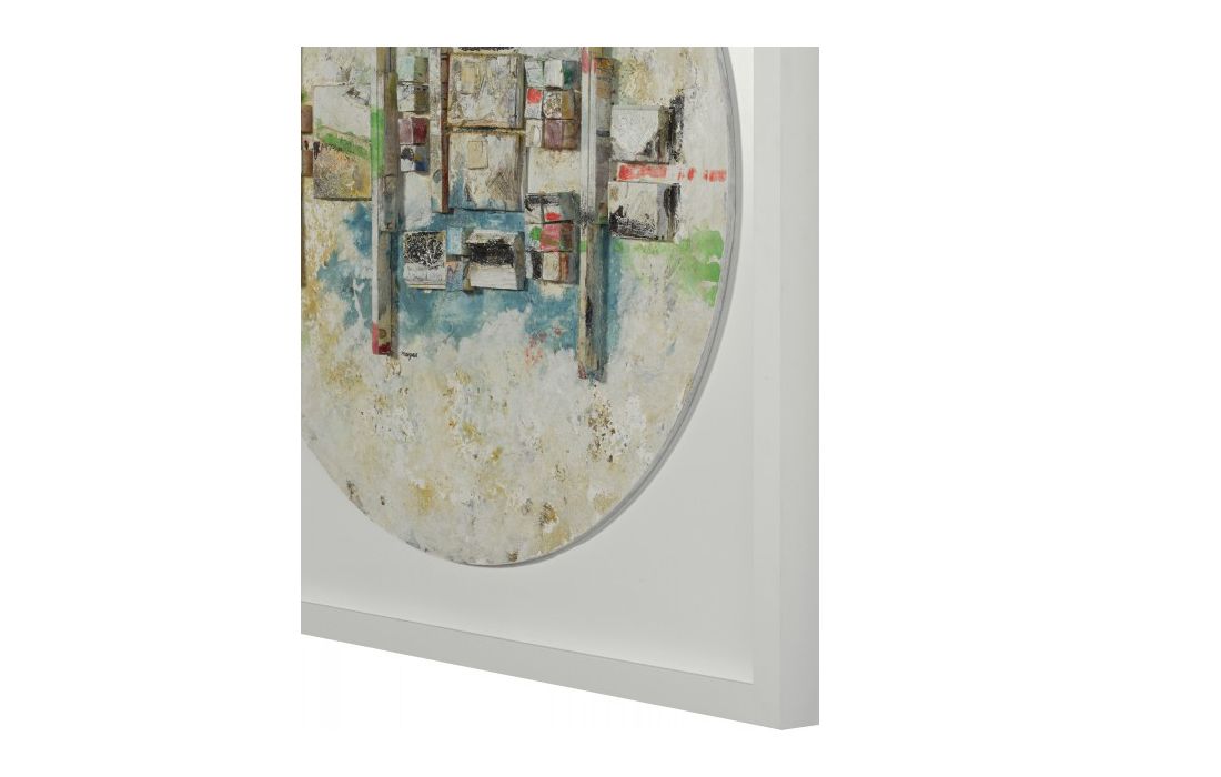 Quadro original do autor Felipe Marpau, pintura abstrata com moldura em lacado branco.