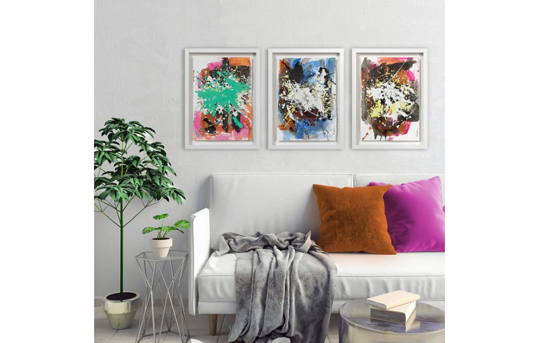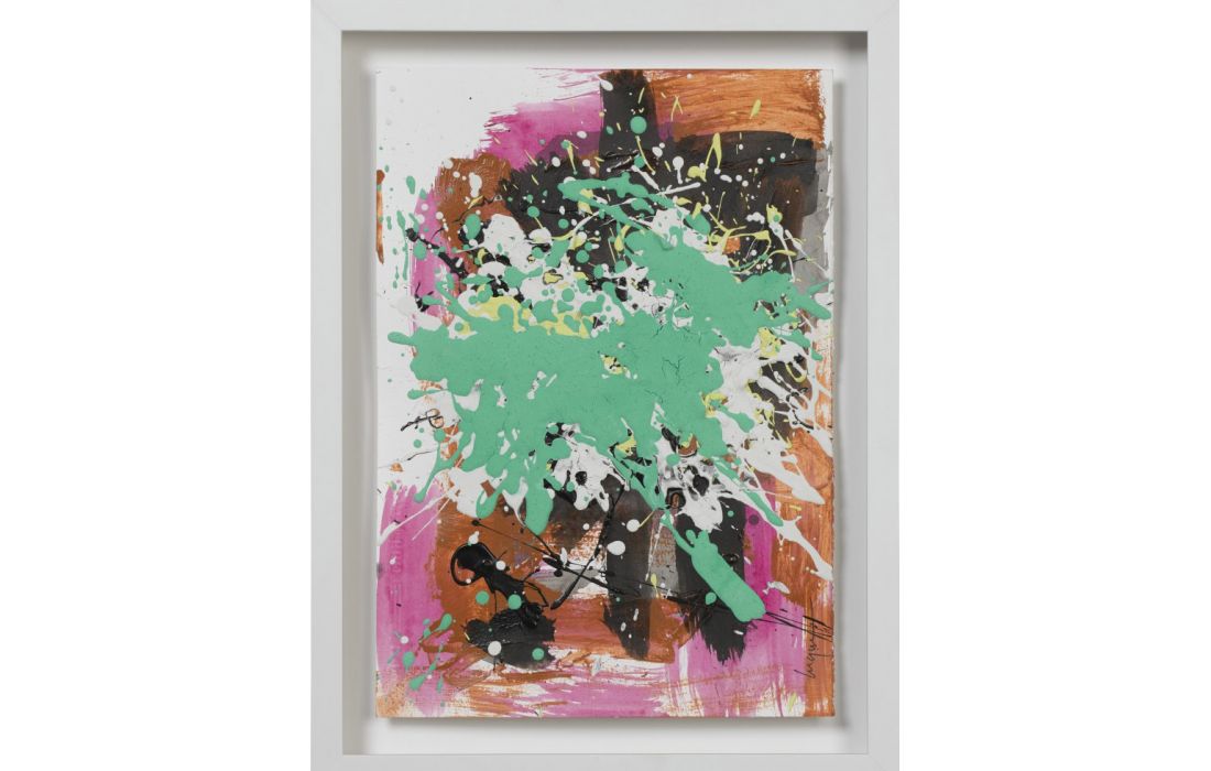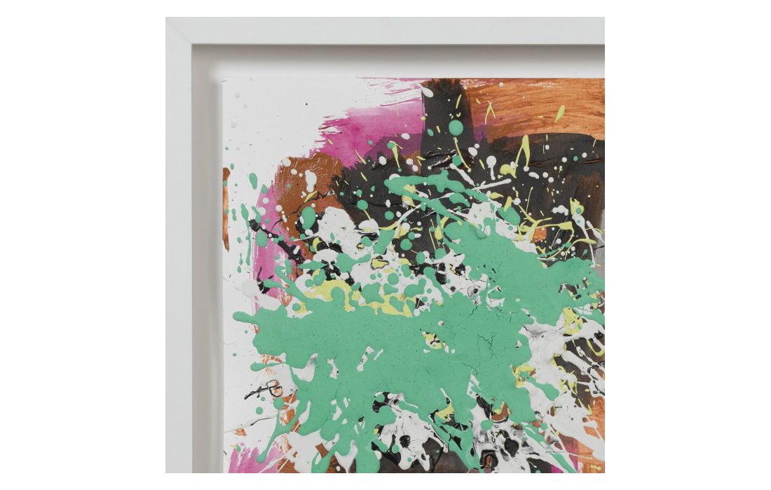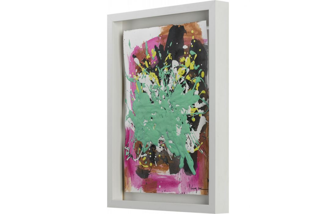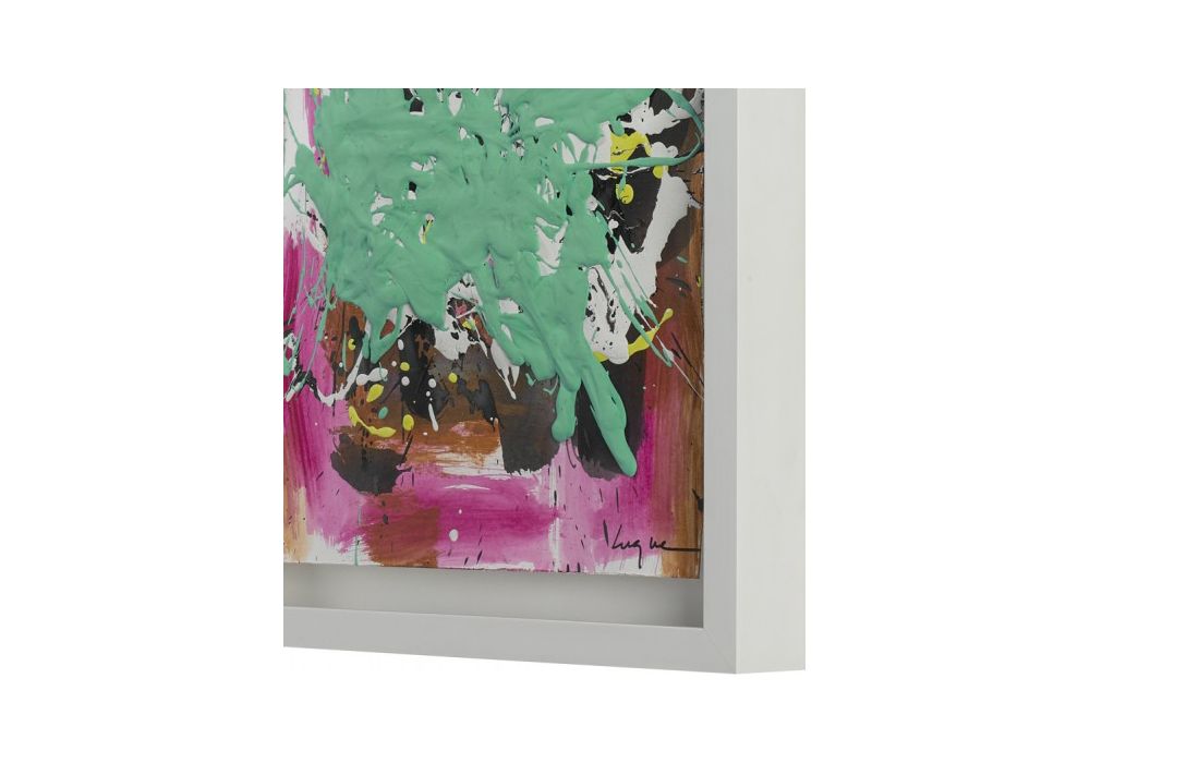 Quadro original do autor César luque, pintura abstrata com vidro e moldura em lacado branco.