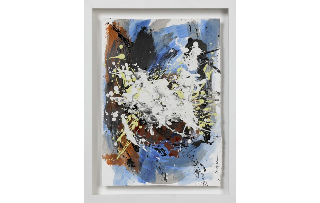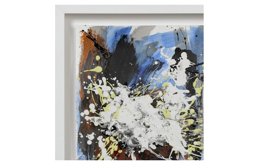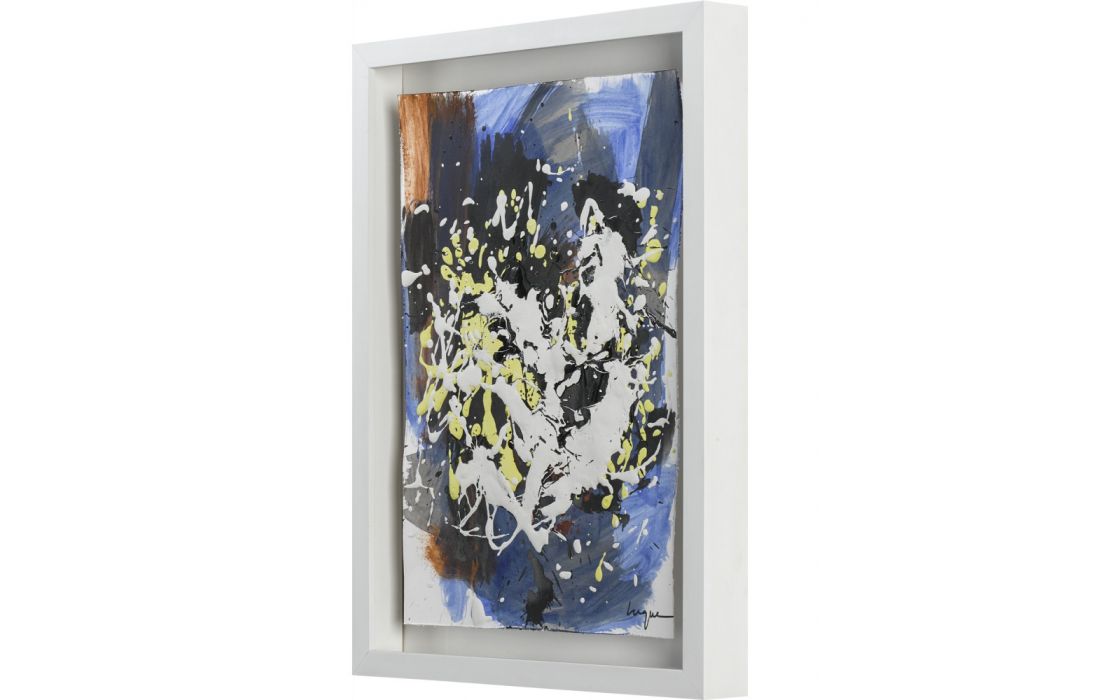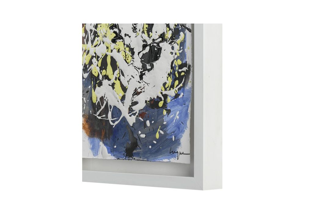Quadro original do autor César luque, pintura abstrata com vidro e moldura em lacado branco.