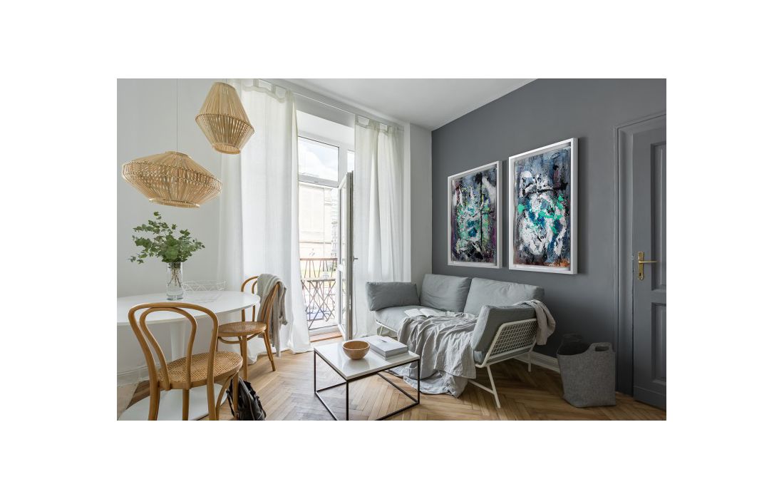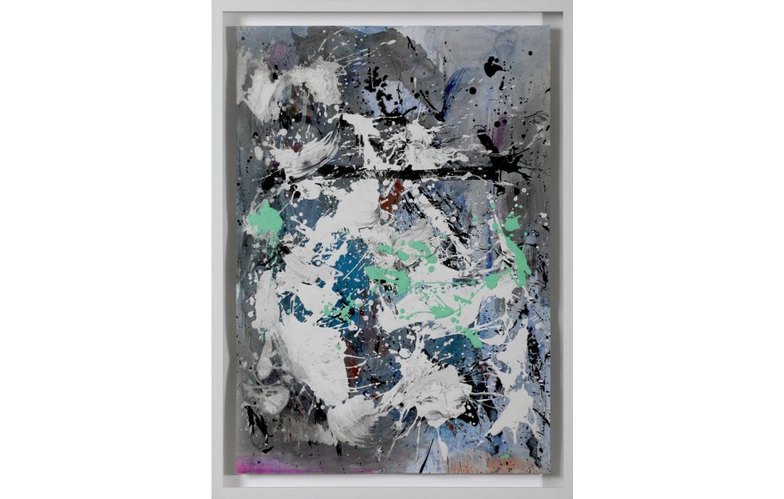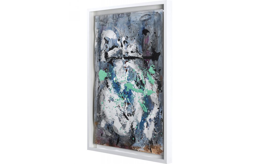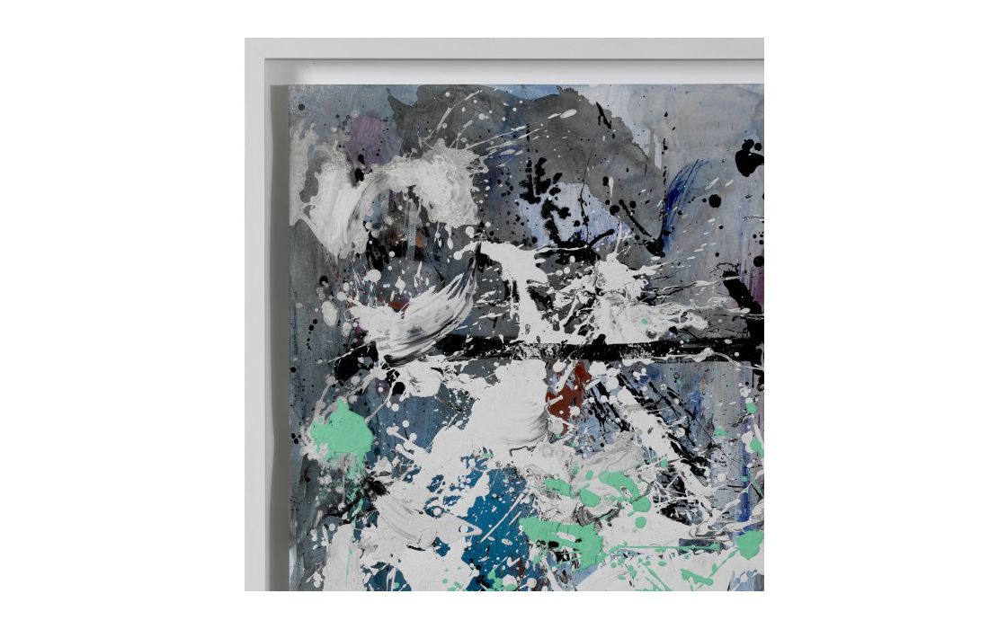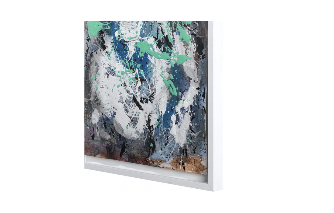 Quadro original do autor César luque, pintura abstrata com vidro e moldura em lacado branco.
