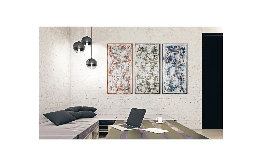 Conjunto de 3 telas, pintura original do autor Robert archer, pintura abstrata em tela com 4 cm de espessura, várias opções com moldura pintada de branco, preto, cinza carvão e madeira de faia.