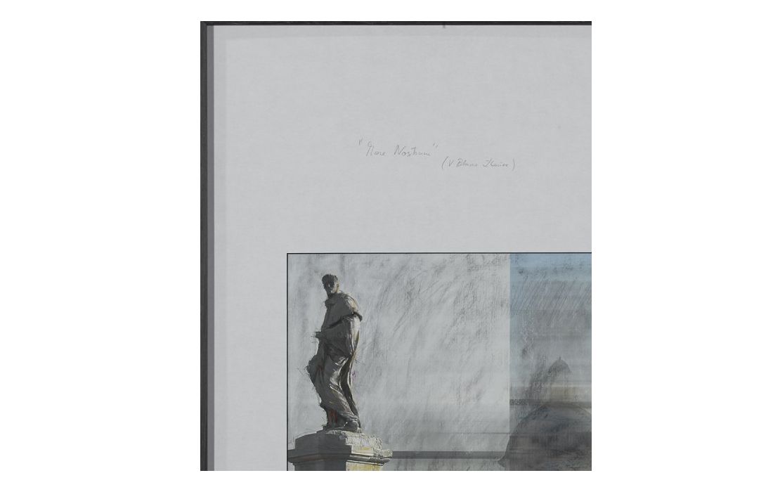 Quadro com pintura original do autor Diego Serra com moldura em aluminio pintado de cor cinza.