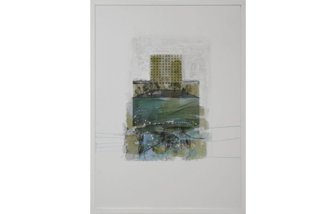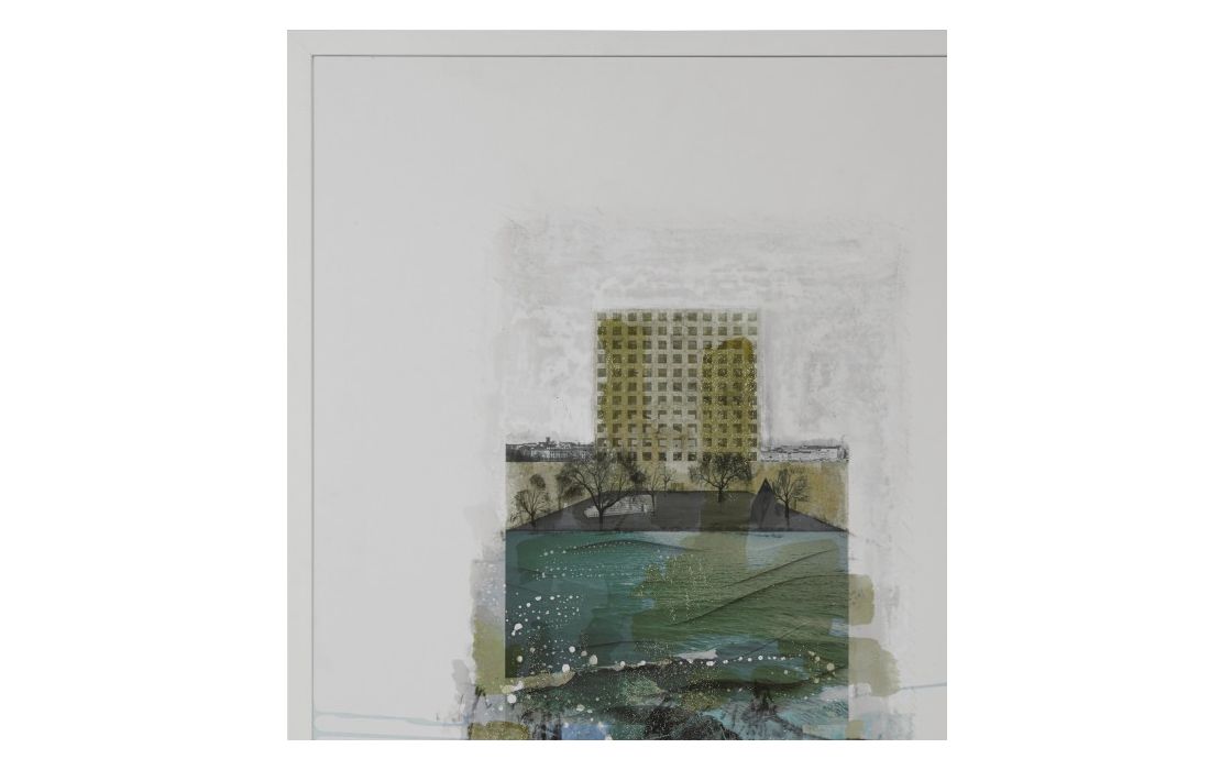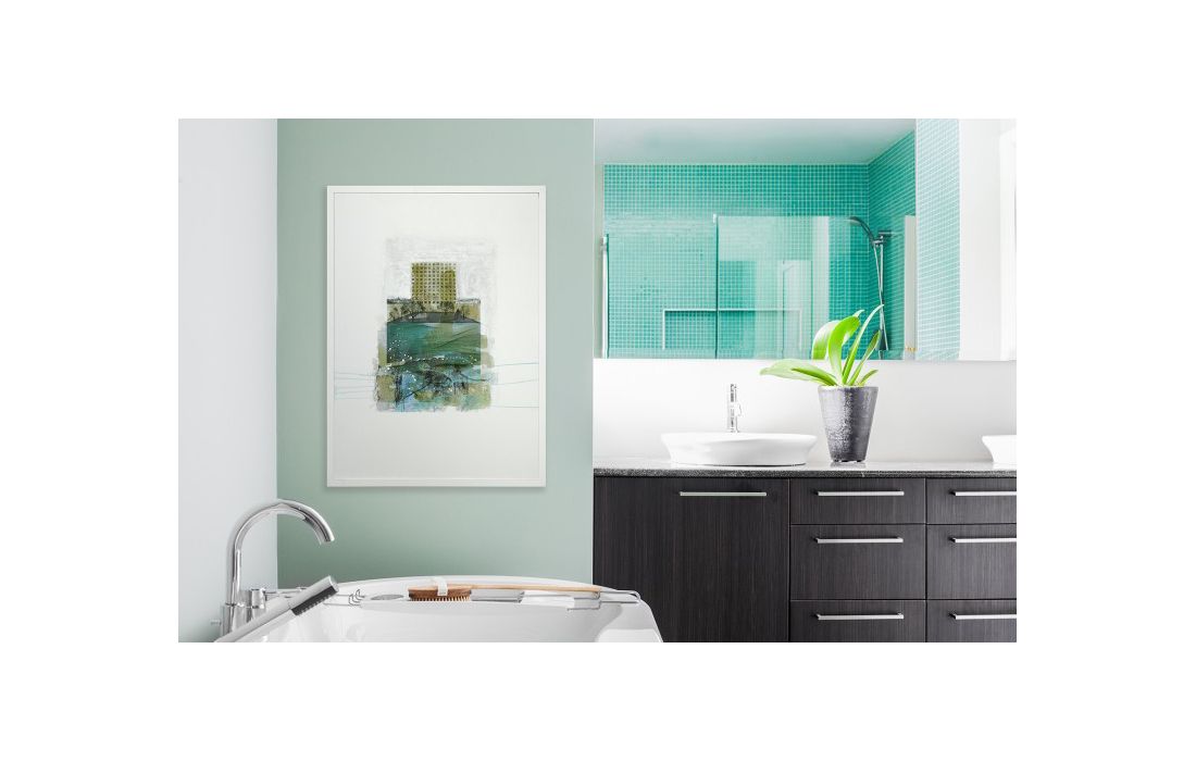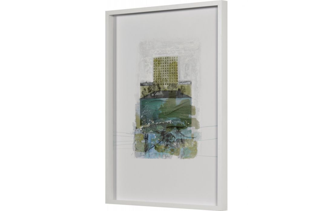 Quadro com pintura original do autor Diego Serra com moldura em lacado branco com vidro.