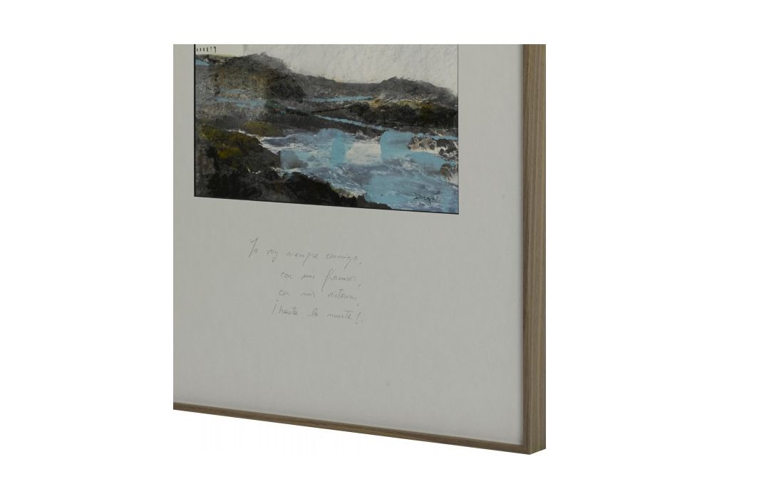 Quadro com pintura original do autor Diego Serra com moldura em aluminio folheada com folha de nogueira americana.