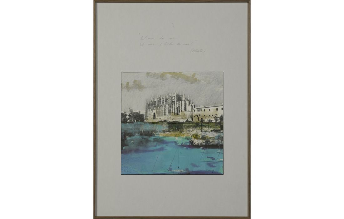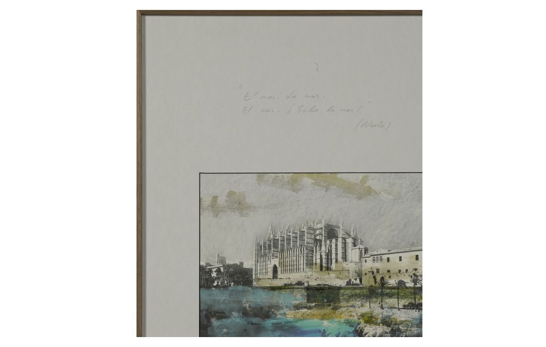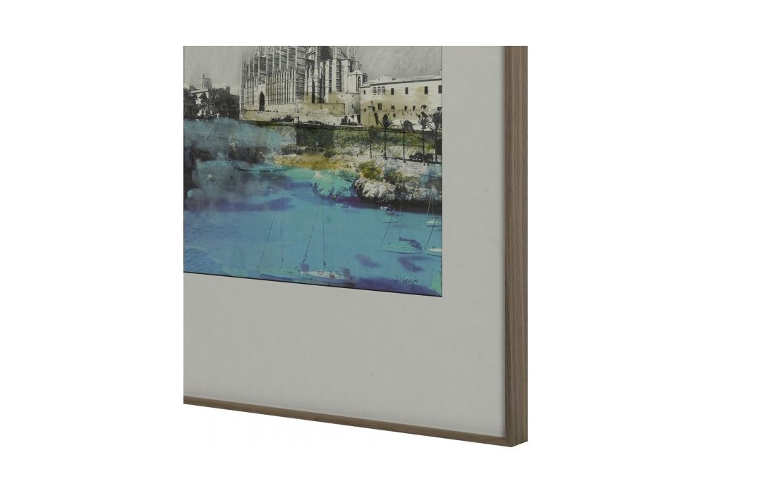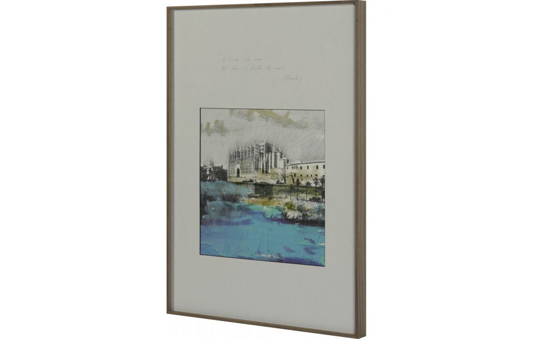 Quadro com pintura original do autor Diego Serra com moldura em aluminio folheada com folha de nogueira americana.