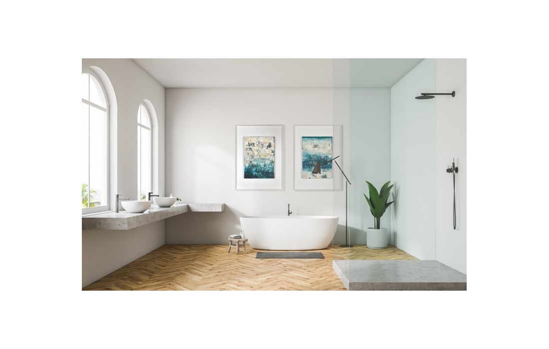 Quadro com pintura original do autor Robert Archer, pintada em tela com moldura de cor branca.
