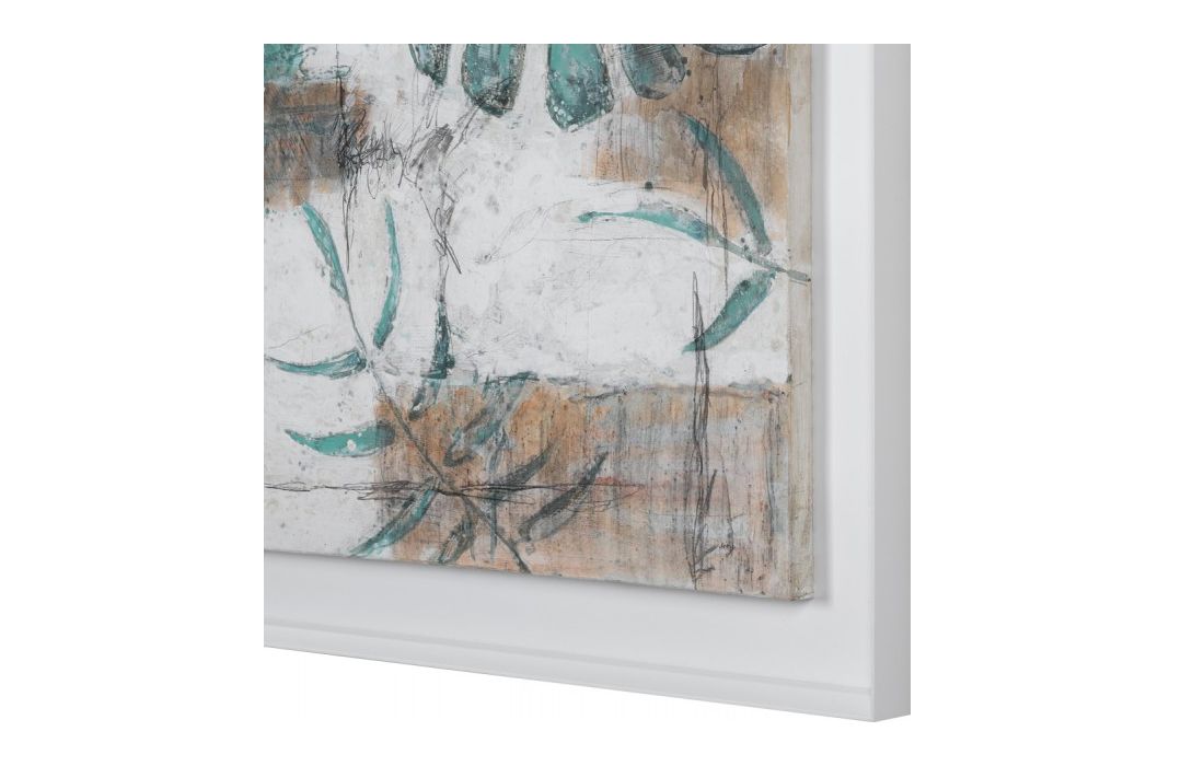 Quadro com pintura original do autor Diego Serra, pintada em tela com moldura de cor branca.