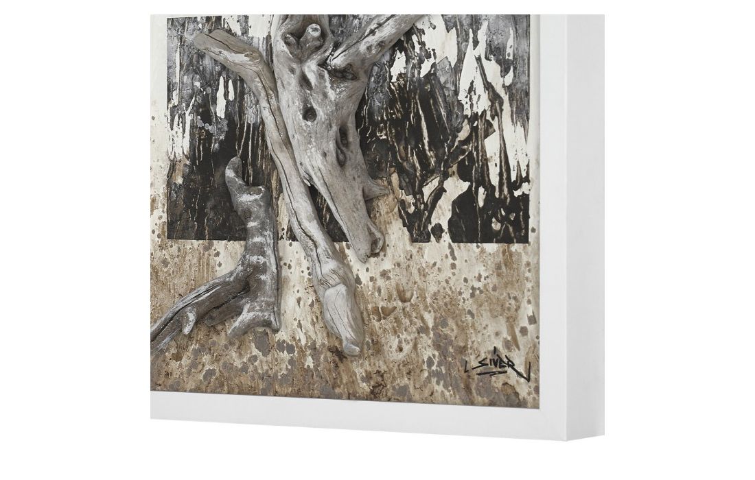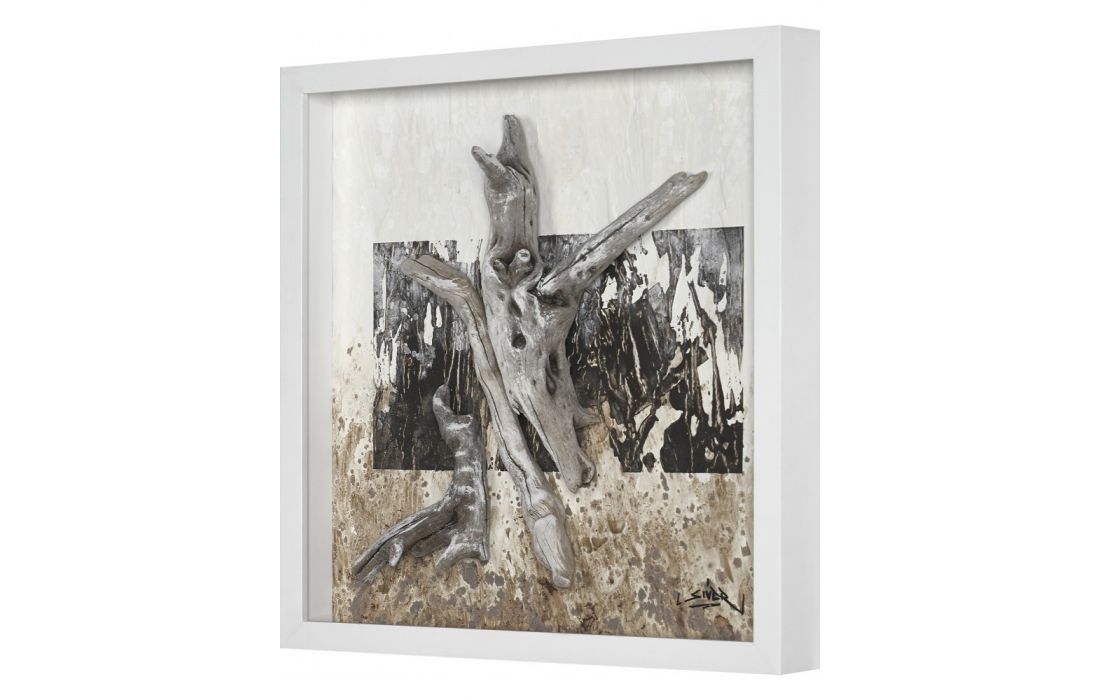 Quadro com misto pintura/escultura original do autor David Siver com moldura em lacado branco.