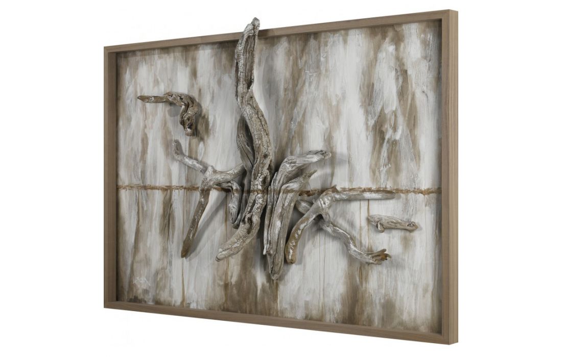 Quadro com misto pintura/escultura original do autor David Siver com moldura em madeira de nogueira americana.