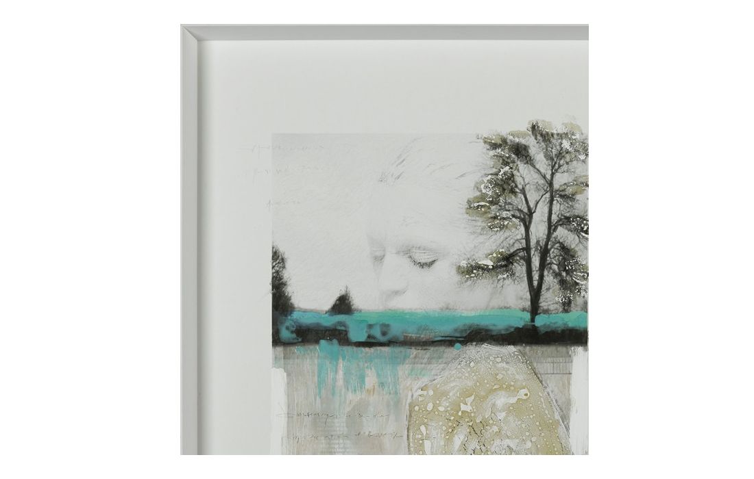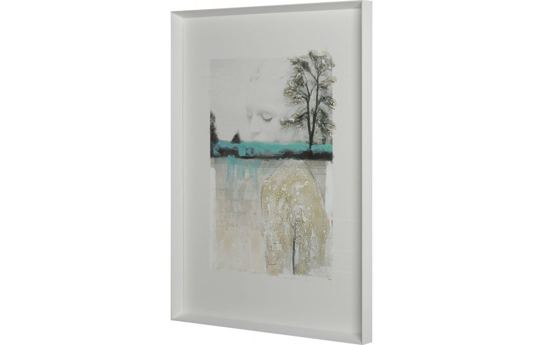 Quadro com pintura original do autor Diego Serra com moldura pintada de cor branca.
