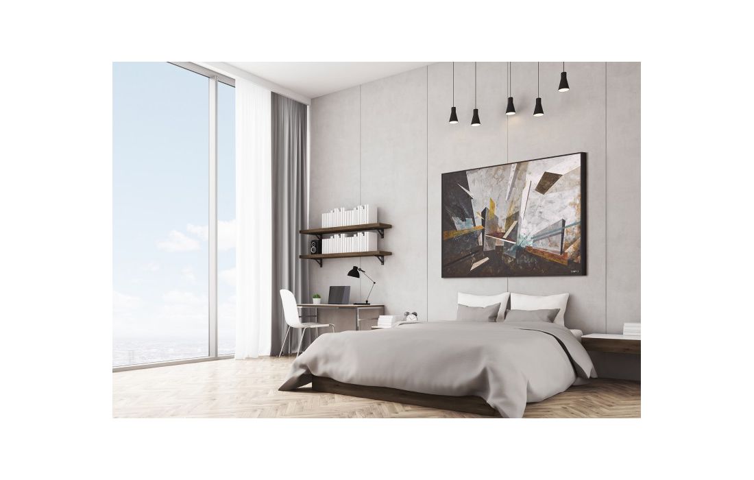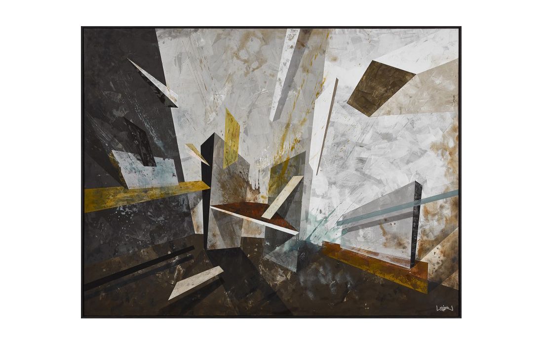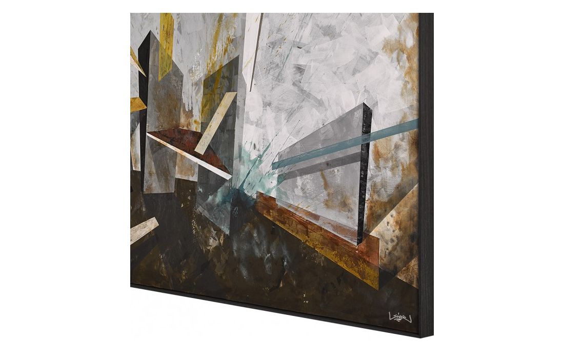 Pintura original do autor David Siver, pintura abstrata em tela, várias opções com moldura pintada de branco, preto, cinza e madeira de faia.