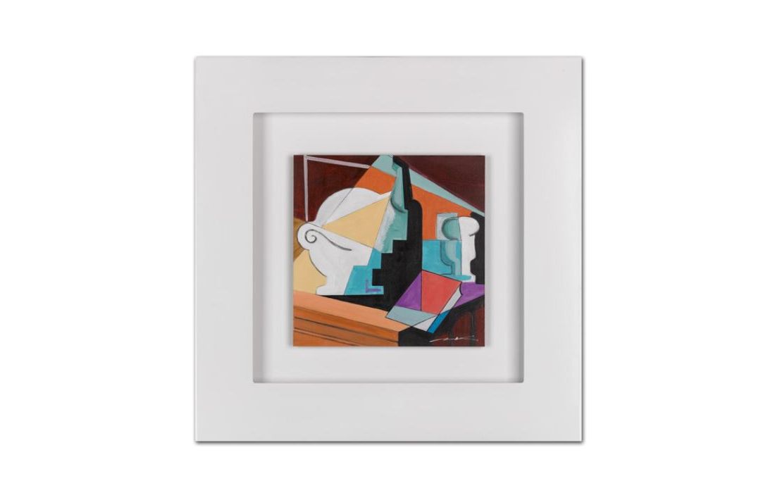 | DESCRIÇÃO E DIMENSÕES - Quadro Bodegón cubista 01 | ||||||||