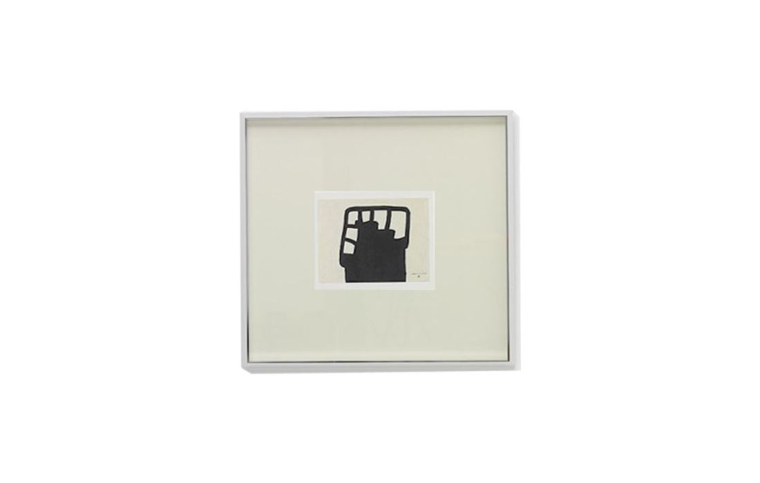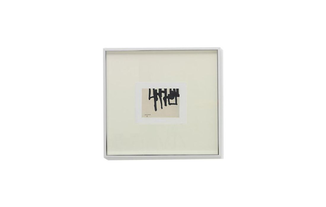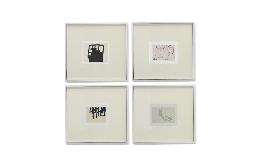 Conjunto de 4 quadros com vidro e moldura de metal branco.