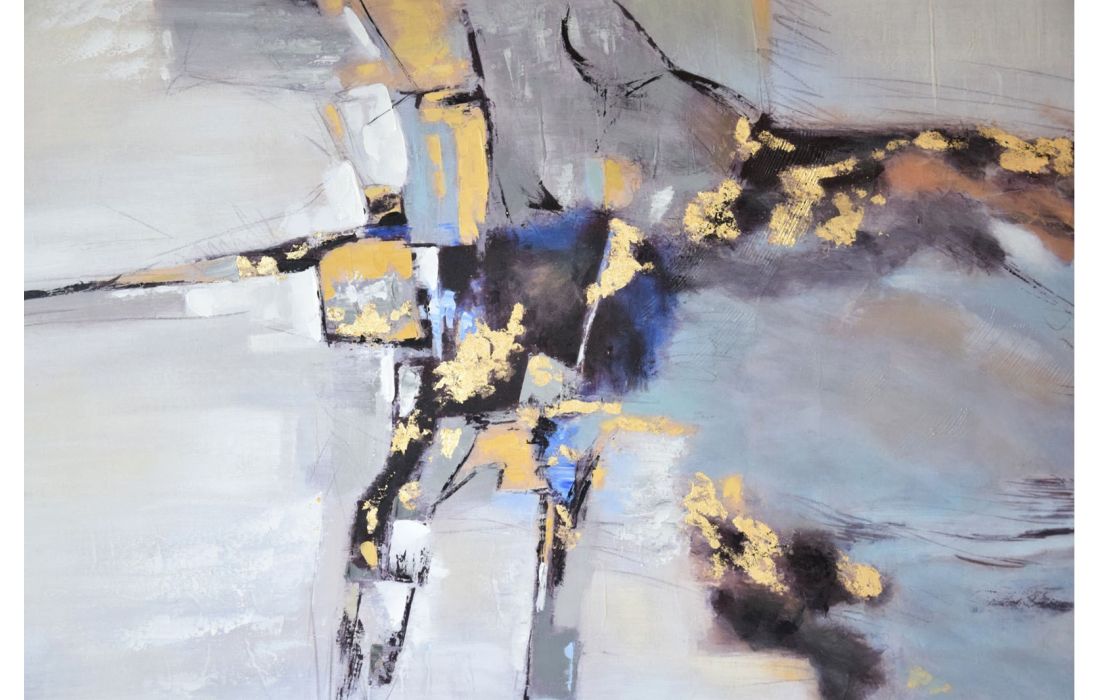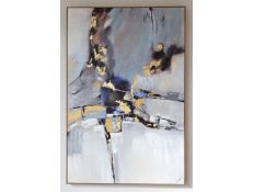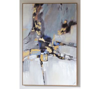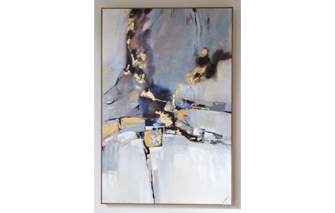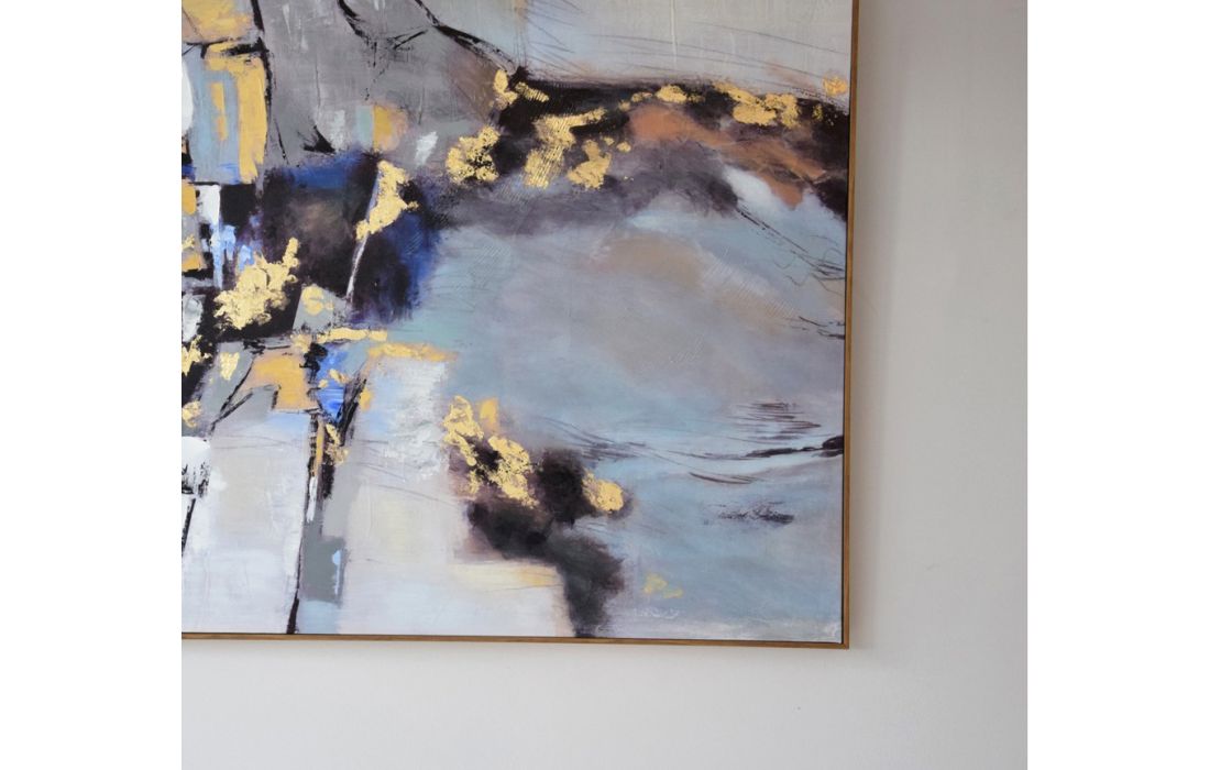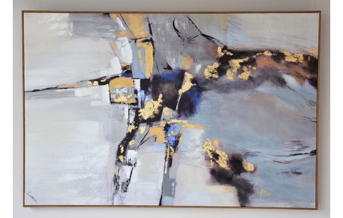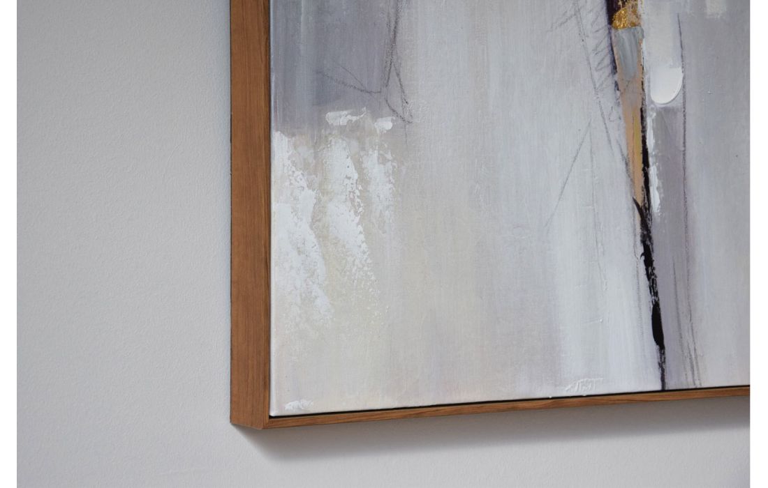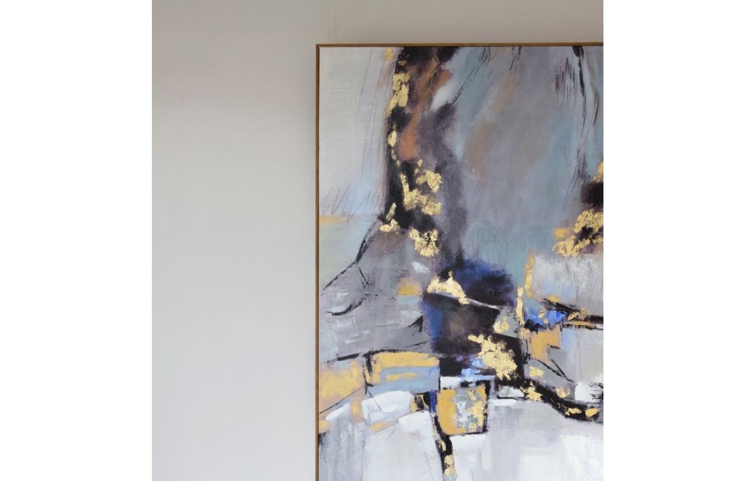 Pintura abstrata pintada á mão em tela com moldura de madeira natural, com opção de colocação na vertical ou horizontal