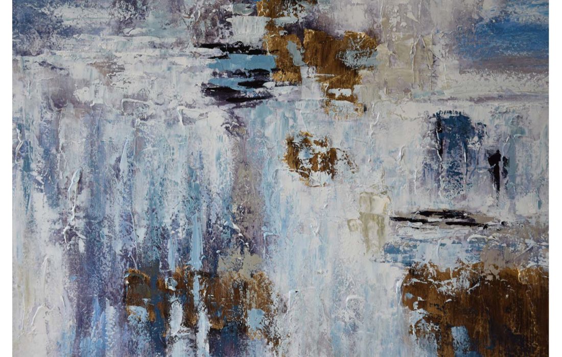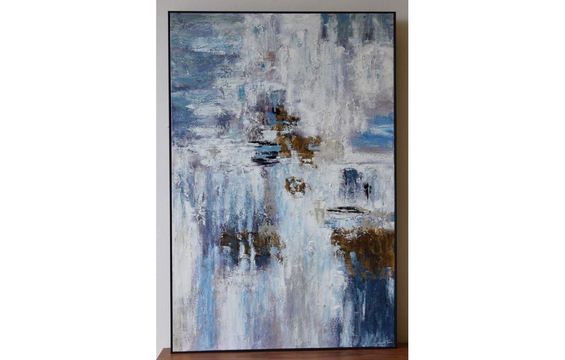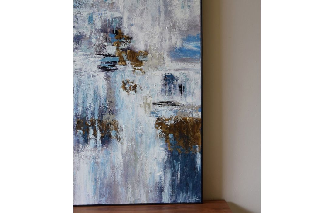 Pintura abstrata pintada á mão em tela com moldura cor preta