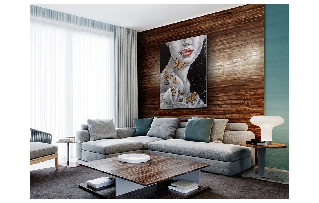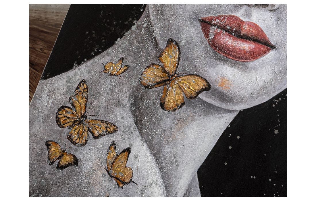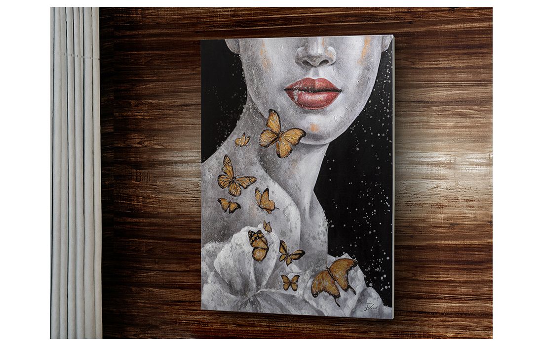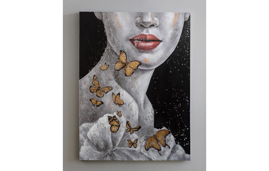 Tela com pintura realizada em acrílico e detalhes em dourado