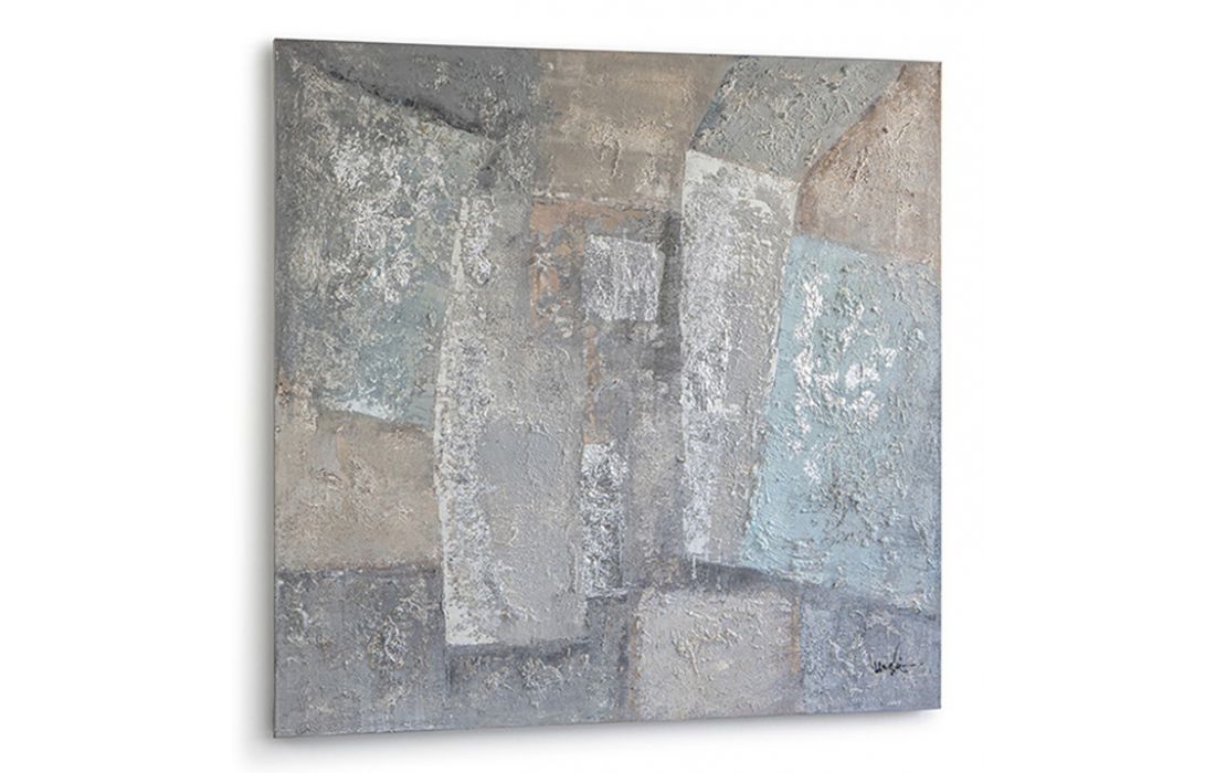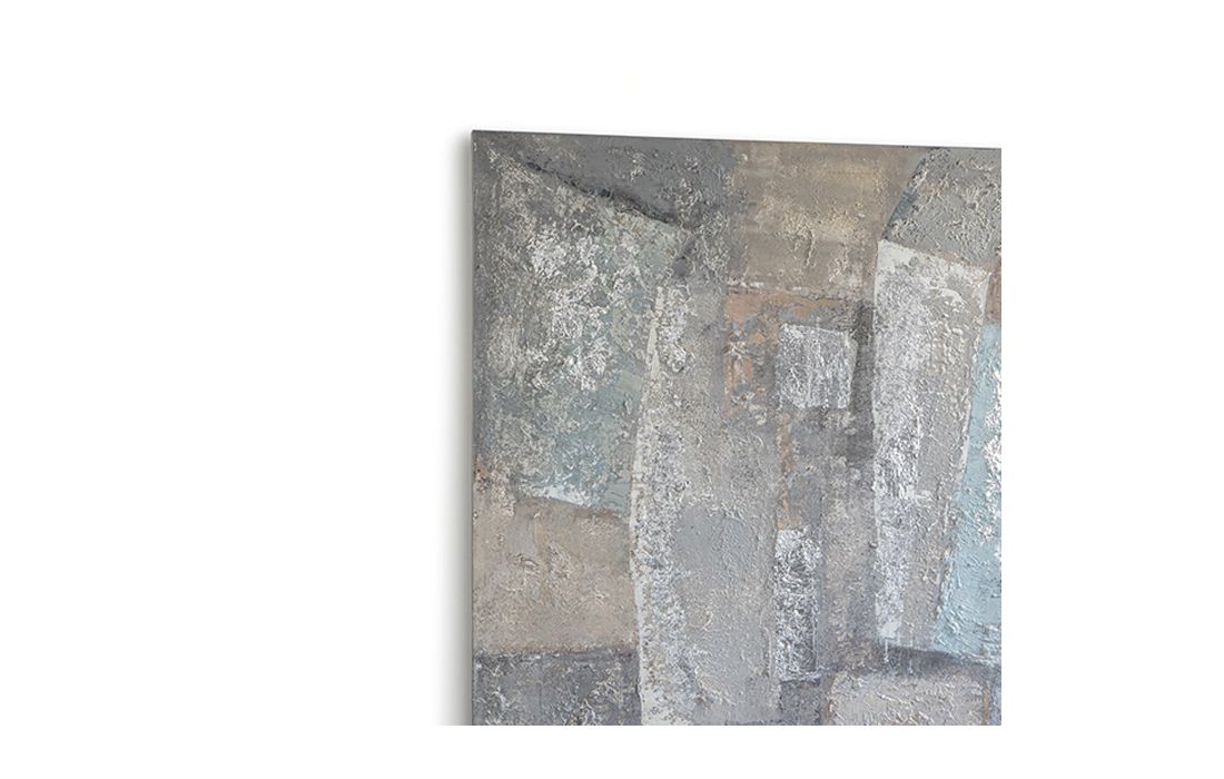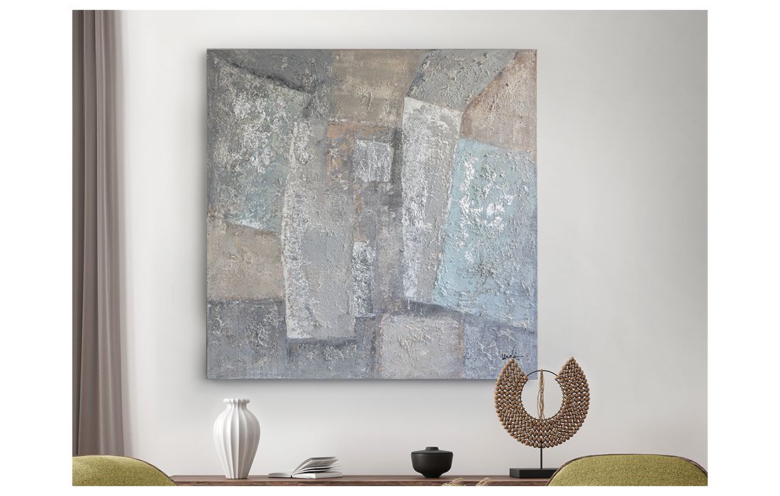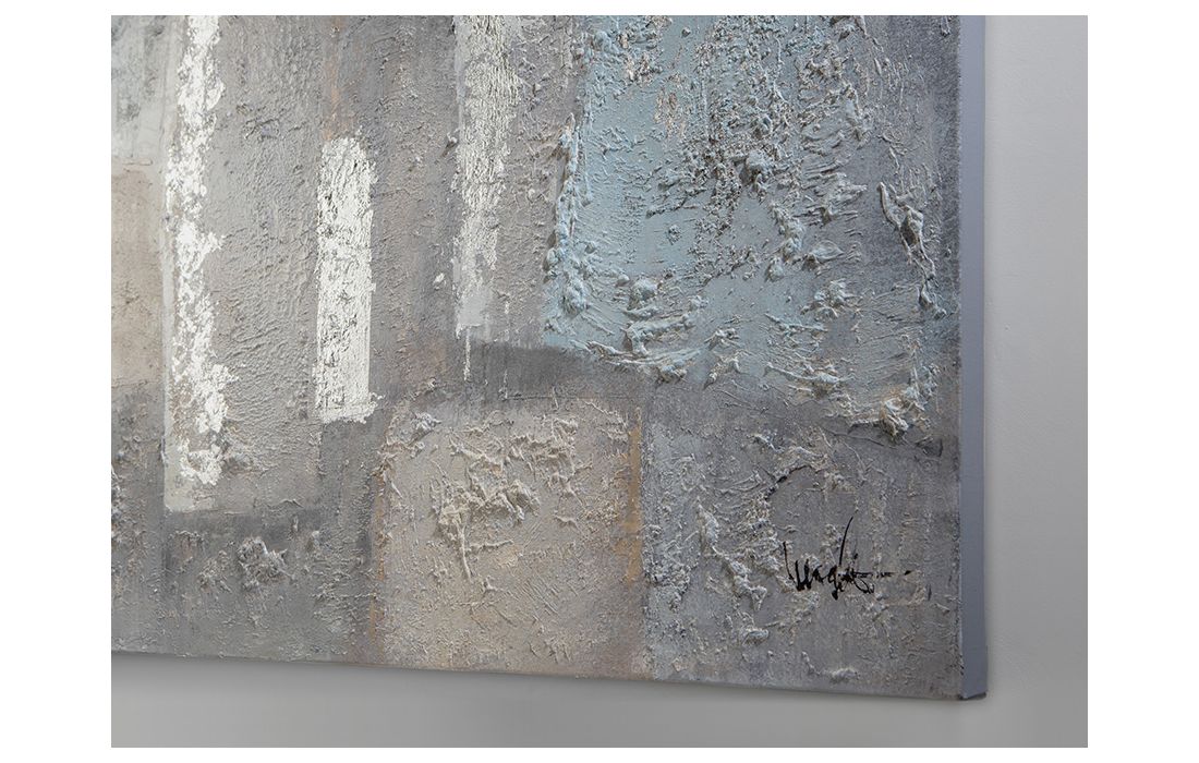 Tela com pintura realizada em acrílico com aplicações em folha de prata