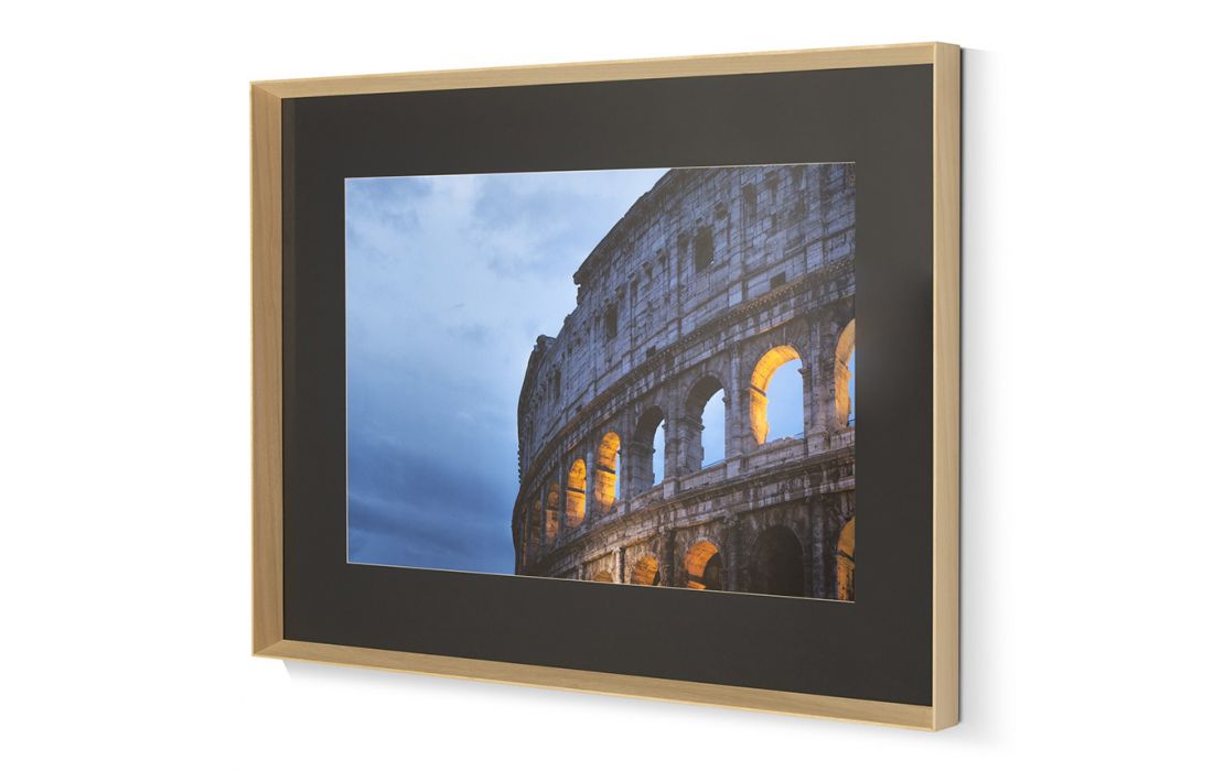 Quadro com moldura de madeira cor natural e vidro