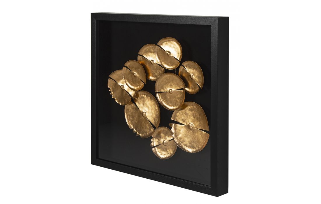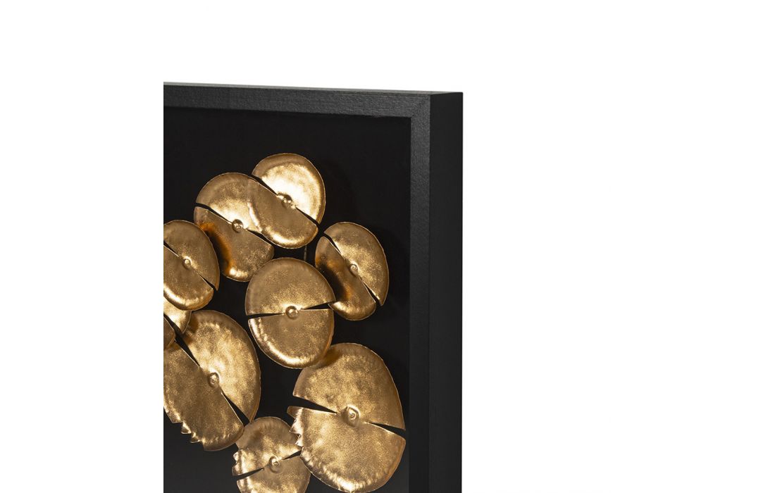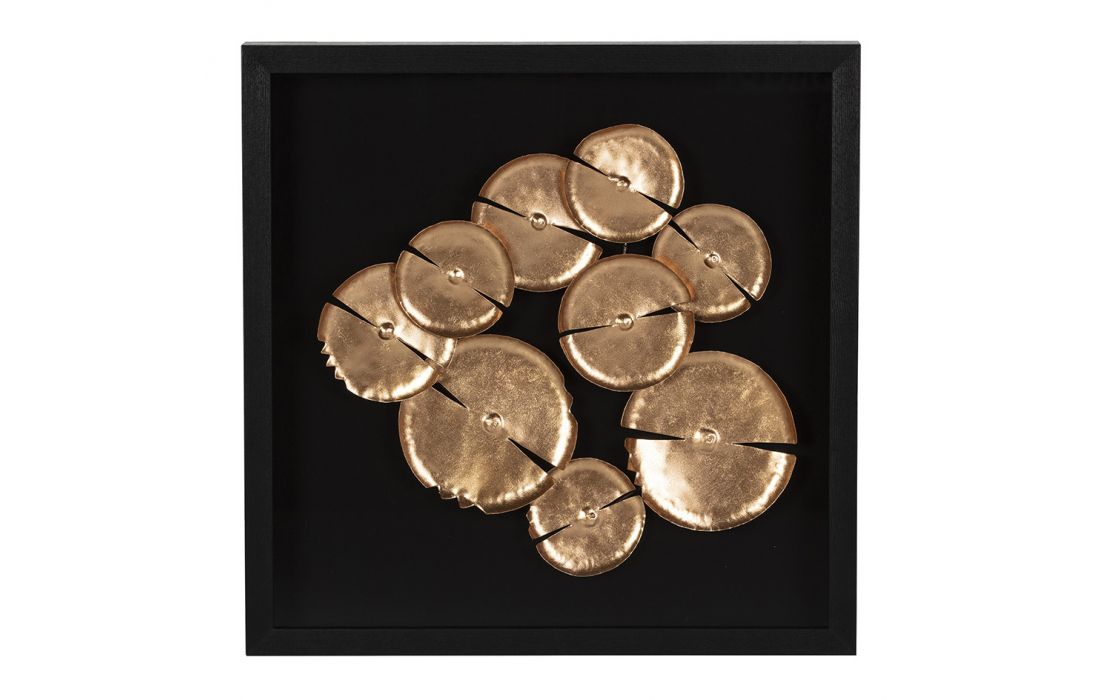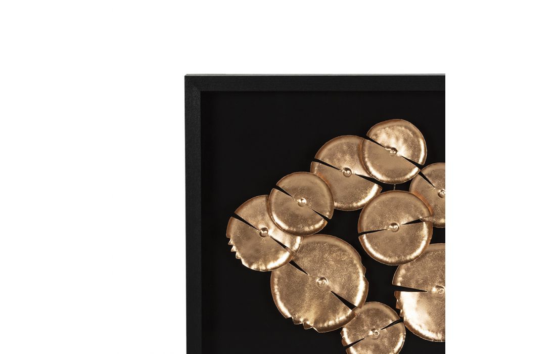 Quadro com moldura de madeira cor preta, vidro e metal cor cobre