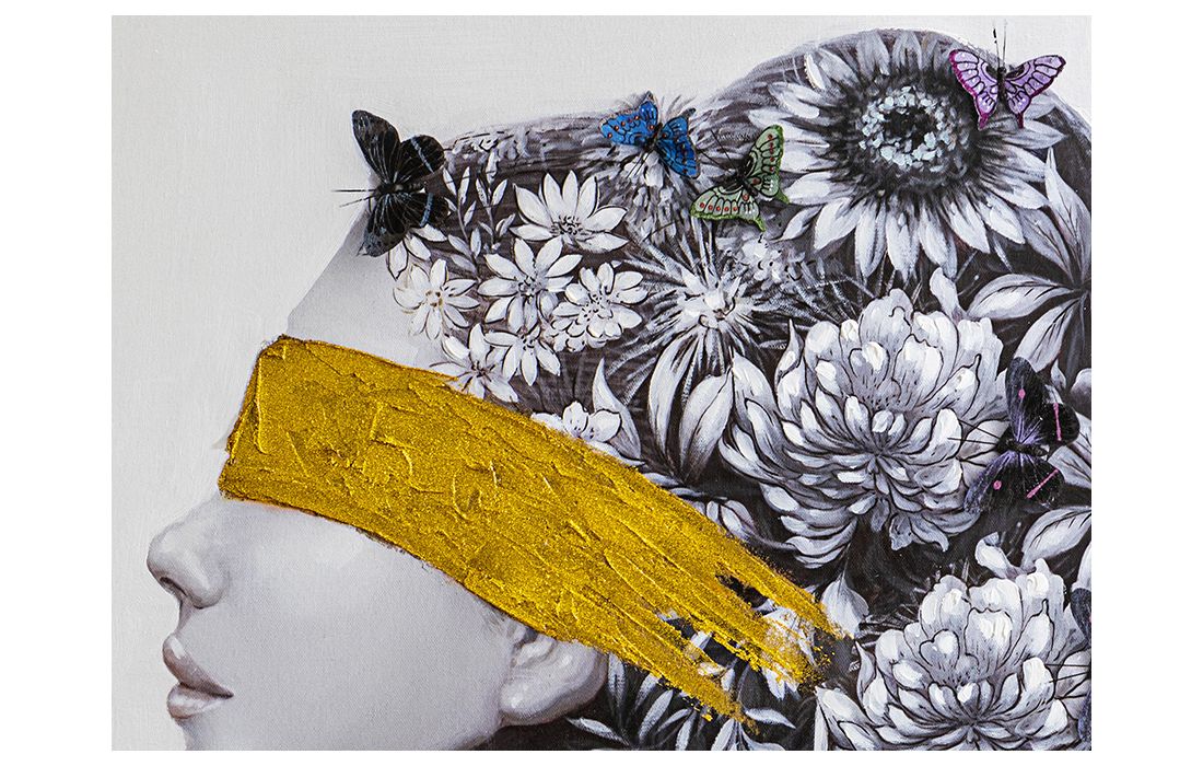 Pintura em acrílico com detalhes em ouro. Montado sobre tela