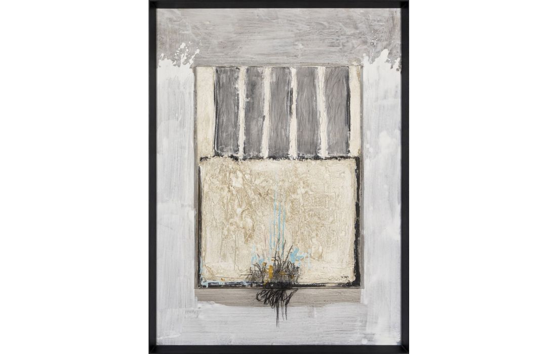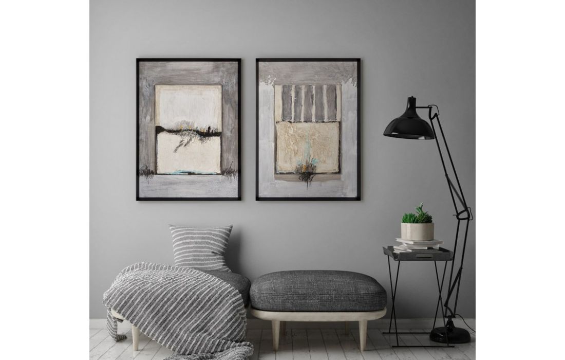 Pintura original abstrata do autor Diego Serra em tela ou com moldura de madeira, opções nas cores branco e preto